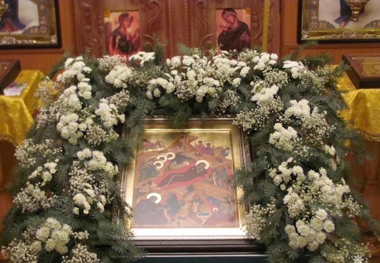 Рождество Твое, Христе Боже наш, возсия мирови свет разума, в нем бо звездам служащии звездою учахуся Тебе кланятися, Солнцу Правды, и Тебе ведети с высоты Востока. Господи, слава Тебе!
