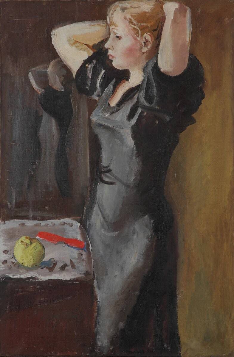 Творчество невозможно без муз, и мы наблюдаем портреты жён художников. Вот работа Петра Кончаловского, где изображена его супруга — Ольга Сурикова-Кончаловская (1925), а тут — совсем в иной манере написанный портрет жены Александра Лабаса — Раисы Идельсон (1930-е гг.). К слову, сия дама была и сама неплохим живописцем, а до того, как стать музой Лабаса, жила в законном браке с Робертом Фальком. Что ж… В интеллектуально-богемной среде и не такое случается! Обращает на себя внимание портрет жены (1934) Фёдора Антонова. Театральный декоратор Любовь Силич стоит в чёрном шёлковом платье, выгодно подчёркивающем её статную фигуру.