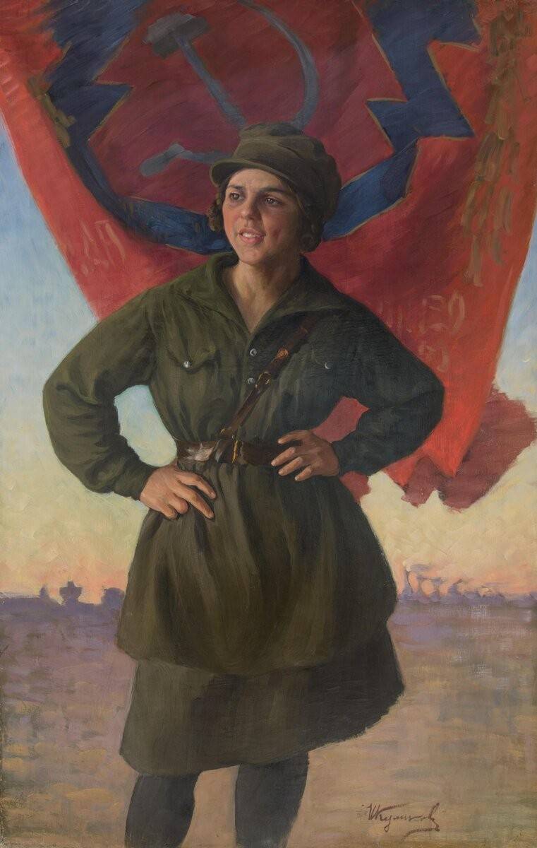 Где спортсменка, там и воительница. Девушки должны в едином порыве вставать в строй — бегать в противогазах, стрелять, прыгать с парашютом. Такие валькирии считались наиболее привлекательными невестами. Хороша девчонка с картины Ивана Куликова «Юнгштурм» (1936)! В те годы в молодёжную моду вошла форма немецкого юнгштурма — тельмановского комсомола. Предполагалось, что германские коммунисты вот-вот придут к власти, но история, увы, распорядилась иначе. А юнгштурмовка осталась в СССР как знак солидарности с европейским рабочим классом. Тогда мыслили, что называется, классово и надеялись на мировую революцию.