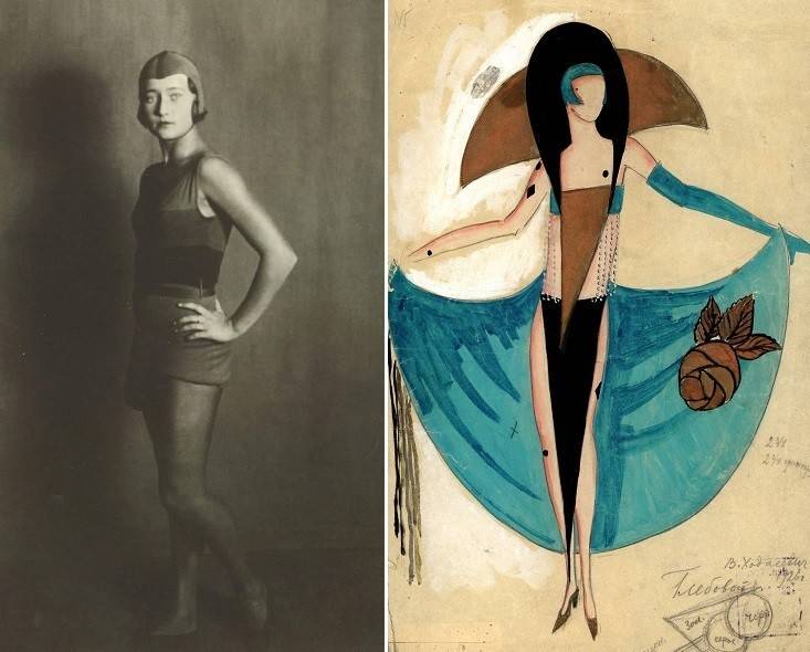 В связи с этим небезынтересна судьба актрисы-щеголихи Анель Судакевич, блиставшей в немом кино, а потом резко поменявшей профессию — Судакевич сделалась одним из ведущих модельеров. Икона стиля эпохи НЭПа стала одевать других. На выставке мы видим платья, сконструированные по её рисункам.
