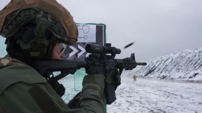 Снег укрыл стрелковое направление и на полигоне воцарилась долгожданная зима. Исходная позиция на старте была очень прозаическая, - каремат, на который участник соревнований должен был лечь без оружия и СИБЗов. По сигналу зуммера необходимо было «проснуться» и как можно быстрее облачиться в снаряжение – пояс, плитник, баллистические очки, шлем. Работая в шлеме надо было не забыть активировать наушники, чтобы слышать команды инструктора и своих товарищей.