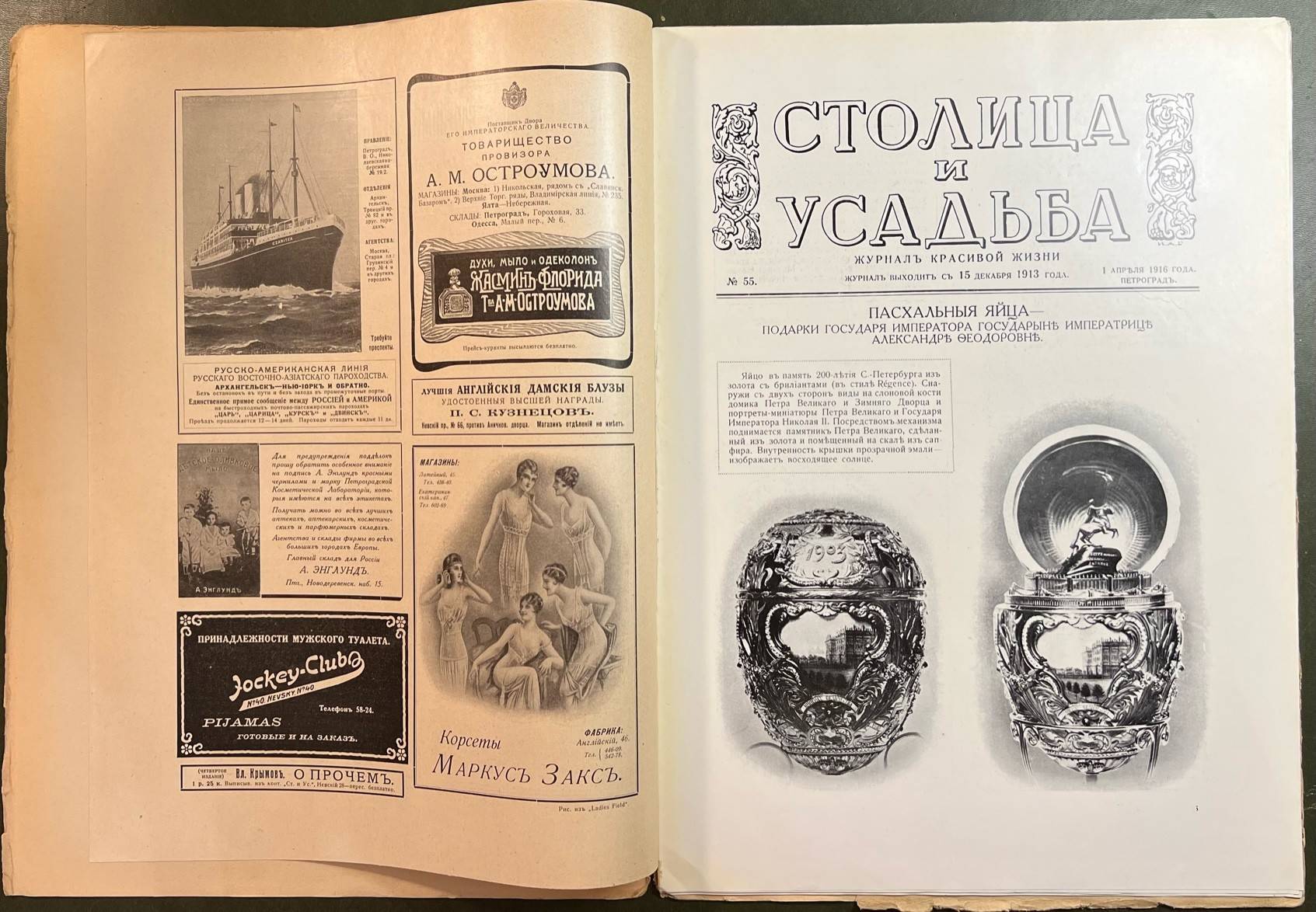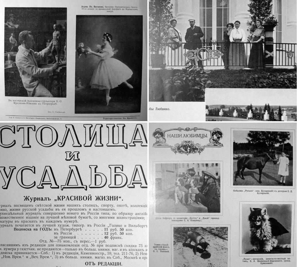 На этом фоне росла и множилась пресса – о технике, моде, искусстве, медицине, политике. Замечательна была «Столица и усадьба», детище Владимира Крымова, предпринимателя, пописывавшего недурные рассказы, впрочем, ныне забытые. Его журнал, выходивший с 1913 по 1917 годы, оказался притчей во языцех – его обожали за шик и презирали за него же. Никакой политики! Лишь картины, залы, светские рауты, богатые поместья, яйца Фаберже и безлошадные кареты Isotta Fraschini. «Дух мелочей, прелестных и воздушных, / Любви ночей, то нежащих, то душных, / Веселой легкости бездумного житья!» - как сказал ещё один бонвиван эпохи - Михаил Кузмин. Масса рекламы – конфеты, отбеливающий крем, отдых на Ривьере. Фотографии светских львиц – томных и разодетых, с домашними питомцами. На страницах этого издания впервые в России было напечатано цветное фото. Стильные дизайнеры и лучшая бумага – даже явные недоброжелатели отмечали размах.