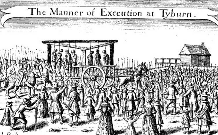 И это в стране с населением едва ли достигающим 2,5 млн. чел. [13] Английские законы насчитывали сотни преступлений, за которые полагалась смертная казнь, например за кражу на сумму в 2 шиллинга (стоимость курицы) - а ведь для ограбленных людей кража еды оставалась последним способом спасти от голодной смерти себя и своих близких. По сути, правящий класс - как это по-английски - совершив преступление, ограбив массу людей, выставил их в роли преступников и стал примерно карать.