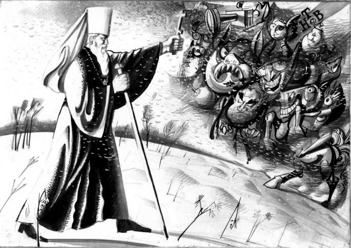 Но и не впадём в беспредельную толерантность, которая в своей беспредельности есть выдумка сатаны. Художник, который рубит топором иконы на глазах у верующих, — это сатанист. Хулитель, который оскверняет памятник танку Т-34, — это сатанист. Фигляр, объявляющий Россию исчадием ада, — сатанист. Блистательным и непревзойдённым сатанистом является Невзоров*. Он — живописец и пишет свои полотна ненависти. Своими бесподобными метафорами, неповторимым злоязычием он уничтожает все ценности, которые дороги русскому человеку — храмы, надгробия, памятники, места сражений и побед, музыку русского стиха, божественностть русской природы, великой и трагической, бездонной, как звёздное небо, русской истории.