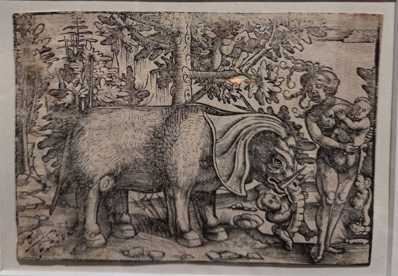 Среди экспонатов – уникальная работа Мартина Шонгауэра «Благовещение. Мистическая охота на единорога» (1489) В роли охотника выступает архангел Гавриил, а привечает единорога Дева Мария. Присутствие этого животного являет её кристальную невинность, духовную и телесную чистоту. Изумителен рисунок итальянца Джулио Кампи «Гротеск с единорогом и драконом в центре» (середина XVI в.) – тут единорог побеждает дракона посреди вычурных виньеток, каковые так нравились заказчикам эры чинквеченто. Аллегория Кампи отображает победу сил добра над огнедышащим злом.