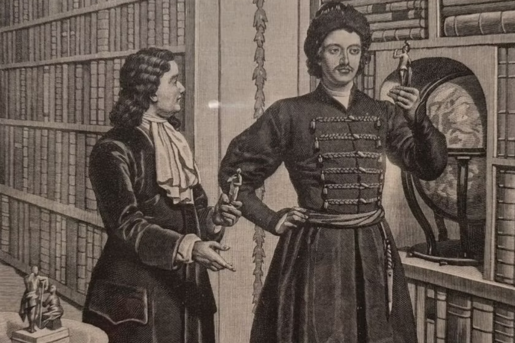 Кстати, увеличенная репродукция этого лубка встречает зрителей у входа на экспозицию. Пётр обожал всё необычное – будь оно техника, зверь, явление или откровенное уродство. Отсюда – создание Кунсткамеры, многие экспонаты которой вызывают ужас пополам с отвращением. Приезжая в Европу, царь тут же посещал коллекционеров, собиравших и произведения искусств, и кораллы южных морей, и раковины, и гербарии с заморскими цветами, и чучела неслыханных птиц. На эту тему - гравюра Юлиана Шюблера по рисунку Николая Дмитриева-Оренбургского «Петр I в кабинете голландского собирателя редкостей Якоба де Вильде в 1697 году» (1854).