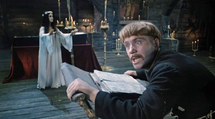 Чувство это, по всей видимости – страх Божий; однако Хома его проигнорировал и тут же заглушил посредством привычных плотских утех. Это продолжается и после того, как он впервые видит панночку мертвой, и на протяжении всех трех последующих суток, когда читает, верней, пытается читать Псалтырь в церкви, вид которой вполне сочетается с состоянием его стремительно деградирующей души. «Церковь деревянная, почерневшая, убранная зеленым мохом, с тремя конусообразными башнями, уныло стояла почти на краю села. Заметно было, что в ней давно уже не отправлялось никакого служения. Высокий старинный иконостас уже показывал глубокую ветхость. Сквозная резьба его, покрытая золотом, еще блестела одними только искрами. Позолота в одном месте опала, в другом вовсе почернела; лики святых, совершенно потемневшие, глядели как-то мрачно».