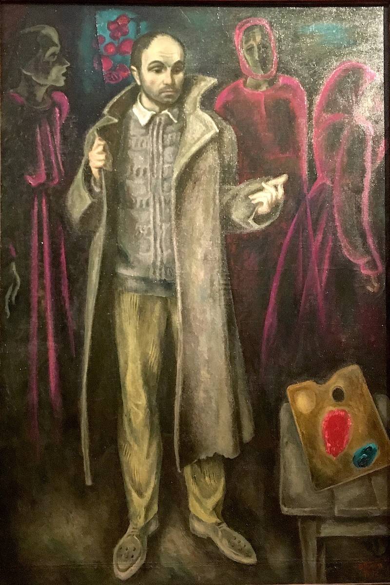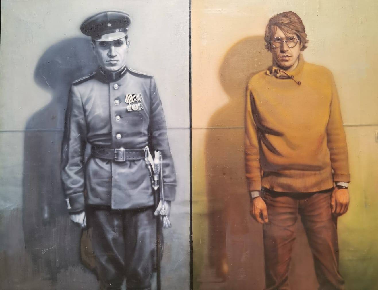 Такова же картина Сергея Шерстюка «Отец и я» (1983) – художник создал двойной портрет, по факту, диптих – себя и отца в одном и том же возрасте. Это – констатация. Отец-одногодок выглядит взрослее и – умнее. Благороднее. И дело не в форме, которая красит любого мужчину. Он – видел, а ты даже и понять себя до конца не смог. Потому – преклоняйся перед отцами, заслужившими право на чистое небо и возможность творить.