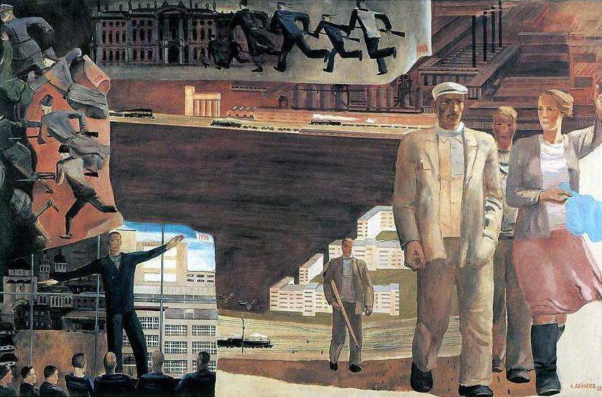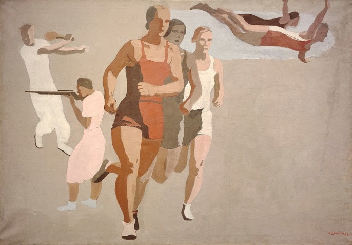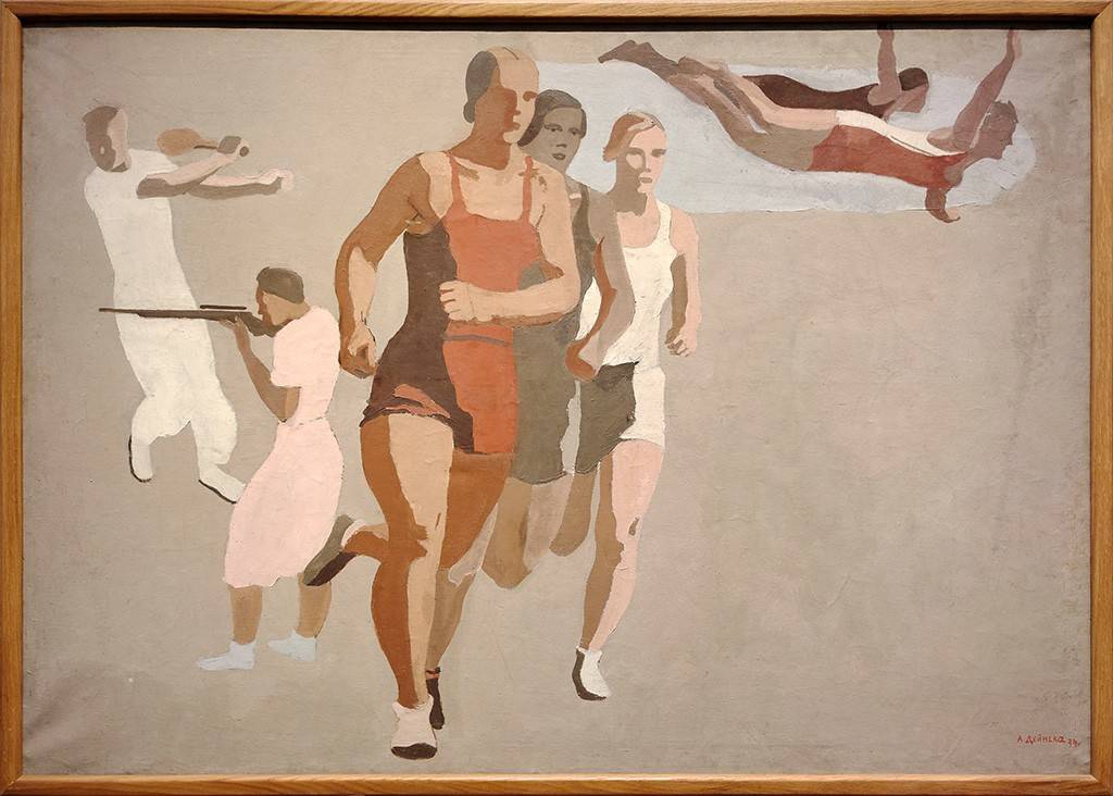 Бурные двадцатые! Всё двигалось, пело, кричало и горело. Дейнека был активен – он состоял в различных комиссиях, участвовал в диспутах, общался с Владимиром Маяковским и, разумеется, занимался спортом. В его творчестве – много динамики, огня, витальности, и, как сказал писатель Иван Ефремов: «Упругая пружина энергии в живом теле человека воспринимается нами как прекрасное, привлекает нас и тем самым выполняет поставленную природой задачу соединения наиболее пригодных для борьбы за существование особей, обеспечивая правильный выбор».