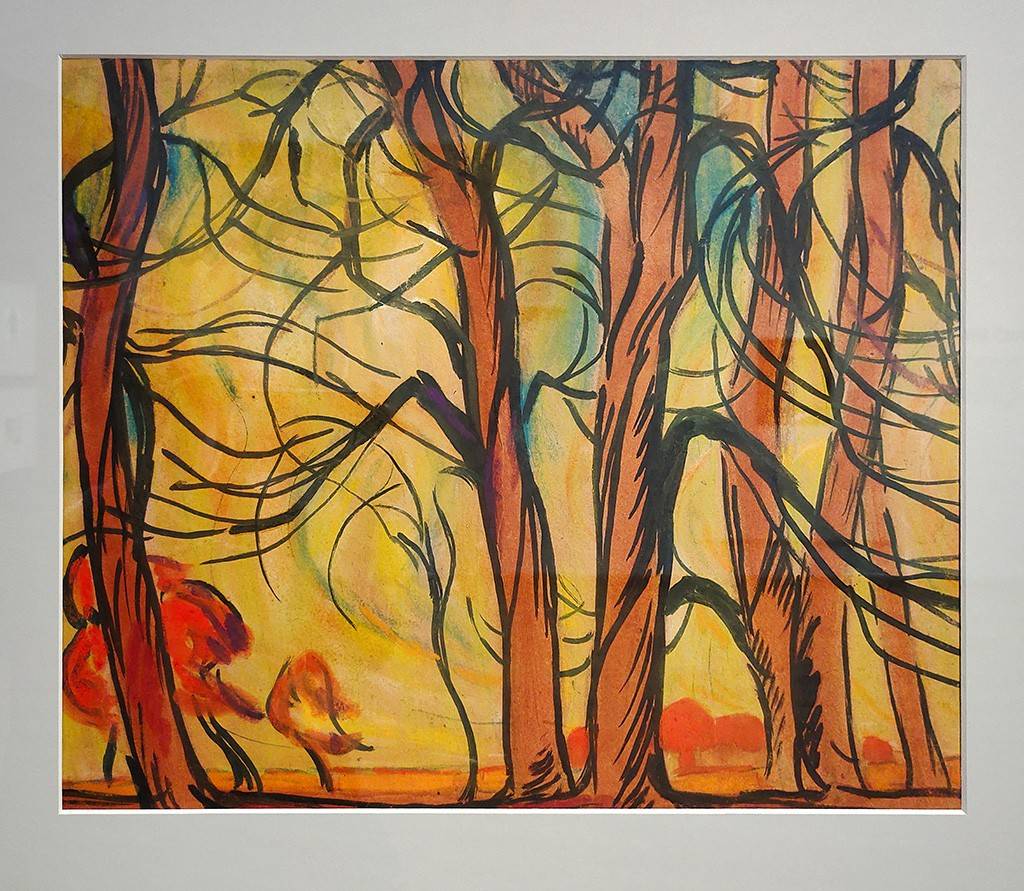 Александр Дейнека родился в Курске, образование получил в Харьковском художественном училище, во время Гражданской войны снова вернулся в Курск, где руководил «Окнами РОСТА». Дейнека – это вечный поиск себя. В экспозиции представлены работы 1910-х – «Мальчик в кепке» (1914), «Портрет мальчика» (1916), «Пейзаж с деревьями» (1916). От реализма – к символизму. Потом художника спешно командировали в Москву – учиться во Вхутемасе, где одним из его менторов был сам Владимир Фаворский. Всю молодёжь увлекали авангардные стили – конструктивизм, футуризм, кубизм, экспрессионизм. Достаточно взглянуть на автопортрет Дейнеки в панаме (конец 1910-х гг.) или на женский портрет (начало 1920-х годов), который можно принять за вещь немецкого экспрессиониста. В остро-кубистической манере исполнен портрет художника Константина Вялова (1923), с которым Дейнеку связывали узы дружбы, да и выступали они единым фронтом на всех выставках.