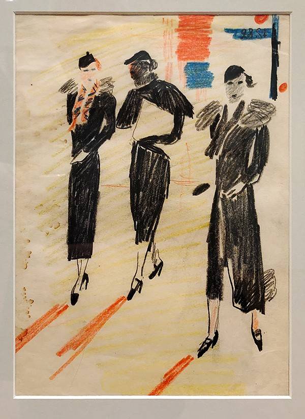 Дейнека 1930-х – это уже умудрённый мэтр, которого не грех и за границу выпустить. В 1930-х он посещает буржуазный Запад и главный оплот акул капитализма - Соединённые Штаты. Его зарисовки похожи на словесные иллюстрации Ильфа и Петрова в «Одноэтажной Америке». Тот же восторг перед электрическим парадизом, соединённый с пониманием, что американцы живут, хотя и ярко, но — тупиково. Небоскрёбы соседствуют с трущобами, шикарные манто — с давно не стиранными лохмотьями. Вот — силуэты тонких-звонких богачек в длинных пальто с пышными воротниками. Они вполне довольны судьбой. А вот - «Вашингтон. Капитолий» (1935) – холм, по которому мчат автомобили. Рядом - «Эстрадный танец-бурлеск» (1935) – буйство броской плоти, представляемой для утоления низменной жажды. Посетил Дейнека и Рим, где его, как любого художника, привлекли старинные камни. Его зарисовки Италии – это смесь динамики и статики. Нравилось это созвучие древностей и новизны.