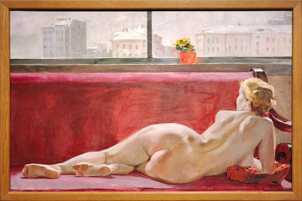 В 1930-х годах Дейнека активно пишет и рисует. Не чужд ему и жанр «ню» - в обнажённой натуре художник видит одухотворённость тела. Купающиеся колхозницы и спортсменки – это культ здоровья. Здесь нет никакого похабства, одно любование. Вот – «Натурщица» (1936) – молодая женщина, лежащая к нам спиной. Она во многом повторяет «Венеру с зеркалом» Диего Веласкеса (1648-1651), словно бы советский мастер принимает эстафету у великого испанца. Однако мирное небо вскоре заволоклось тучами.