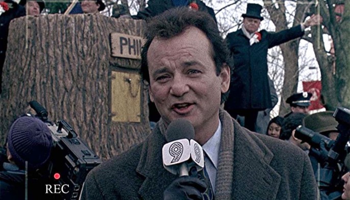 Фил явно презирает День Сурка, освещать который он направлен по работе. Сам он, как и положено человеку современного мира, устремлён линейно, отчётливо циклическое празднование ему чуждо. И он просто рвётся уехать из города после завершения задания, но его останавливает непогода, вынуждая возвратиться.