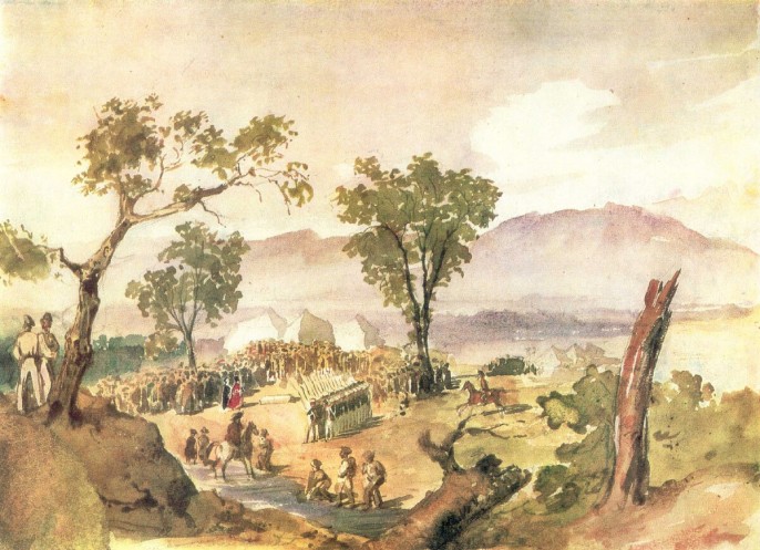 Рисунок великого русского поэта Михаила Юрьевича Лермонтова "При Валерике. 12 июля". 1840 г.