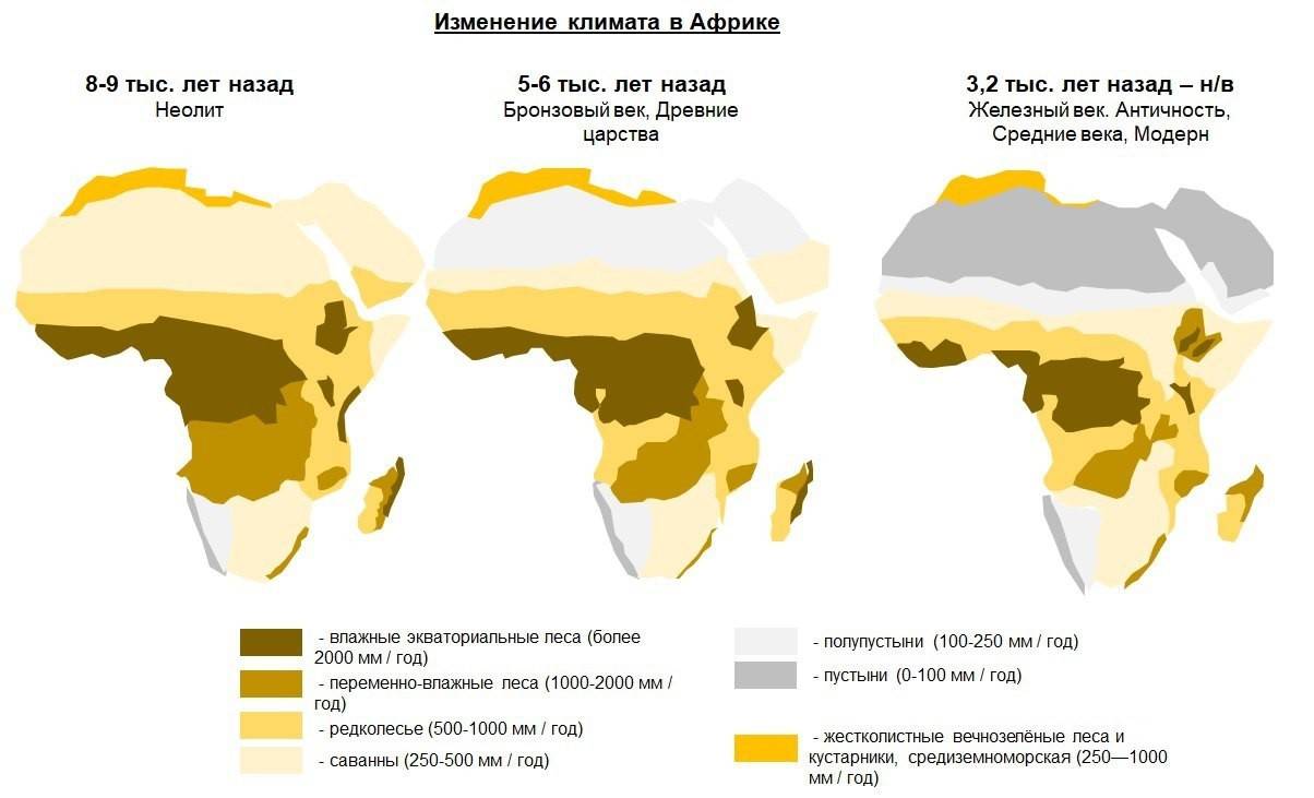 И, да, ледниковый период тоже не принесёт счастья Северу Африки, он будет пустыней – без осадков и более холодной, да и изменения будут длиться несколько тысячелетий, что явно подтолкнёт более сильные и вооруженные этнические системы к действиям и миграции…
