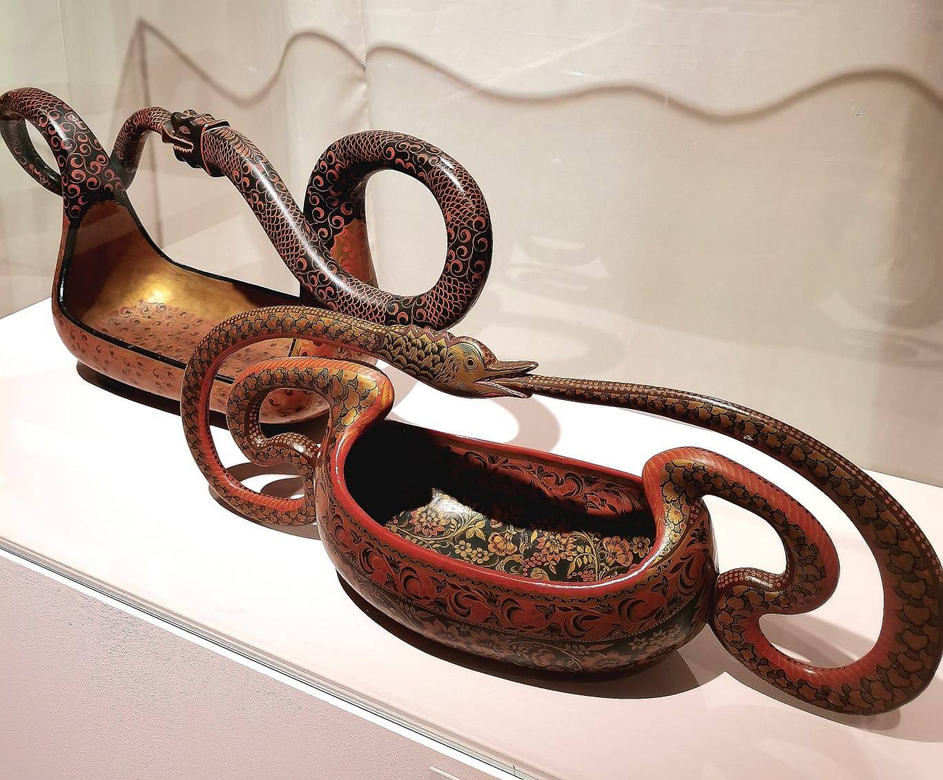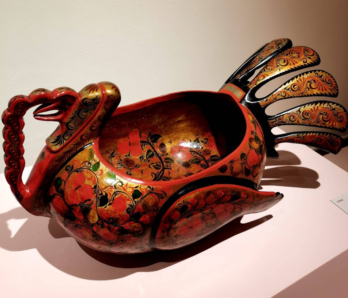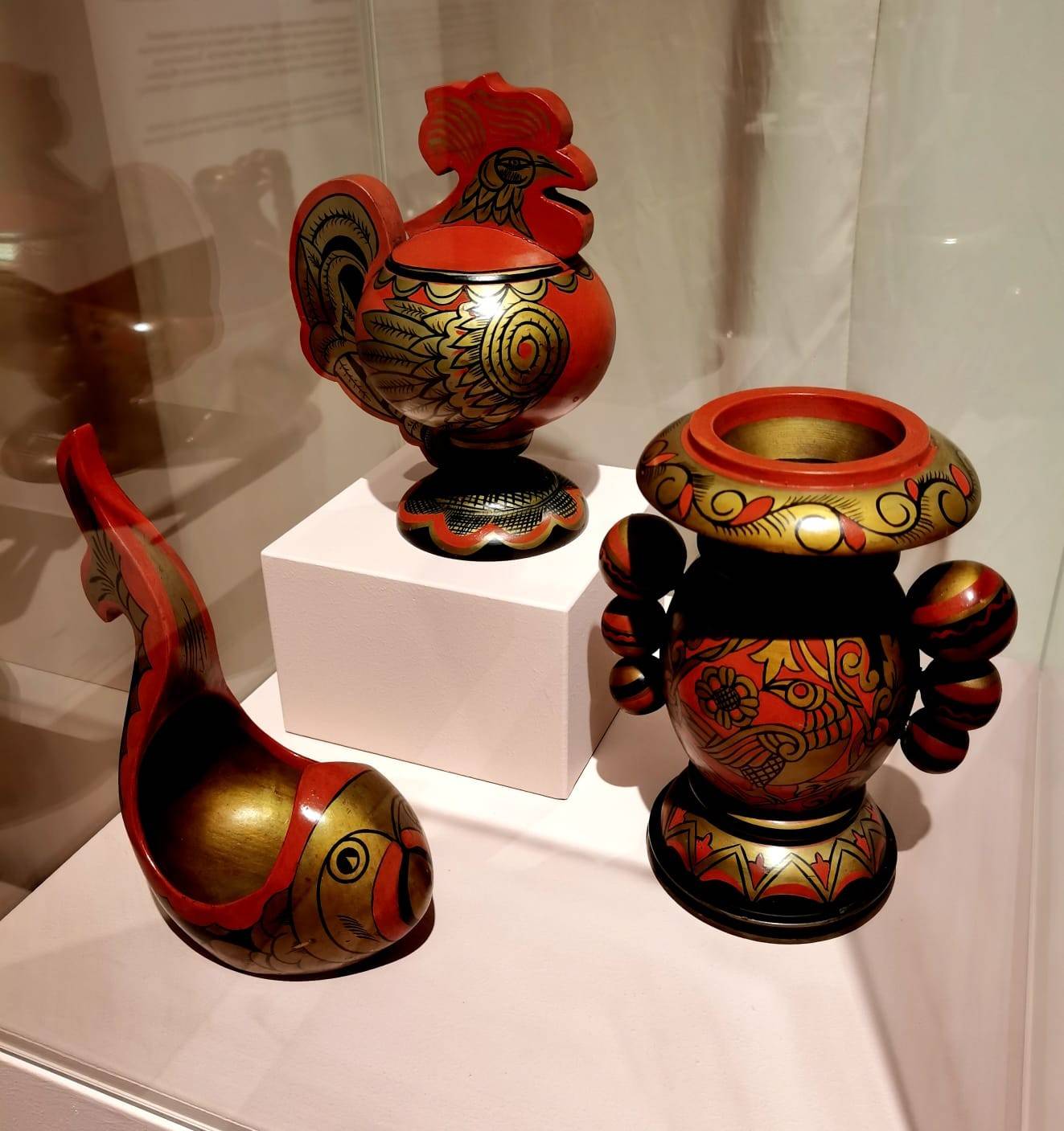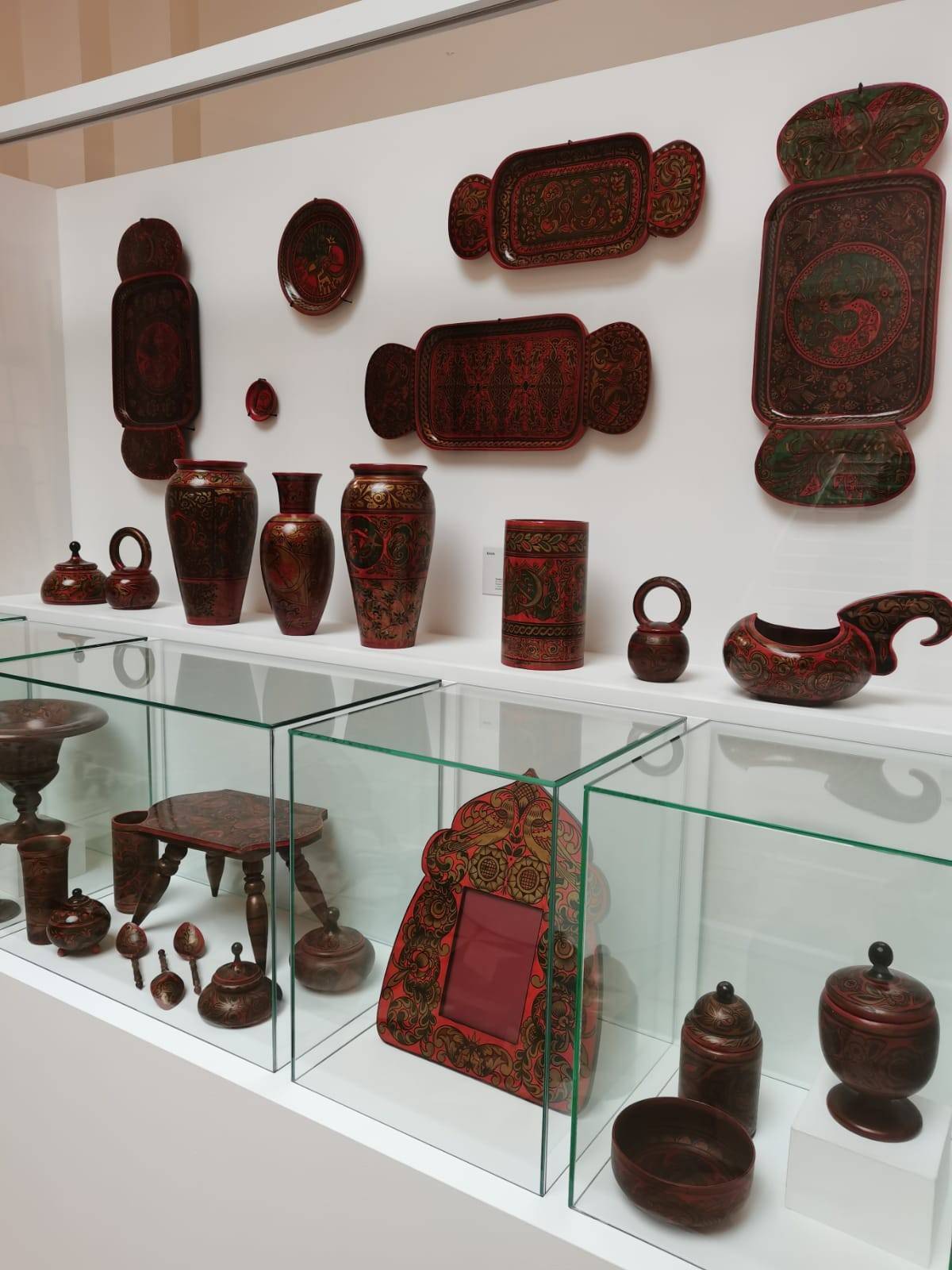 Экспозиция – информативна, обширна и собрана с любовью. Каждый раздел сопровождают пояснительные стенды. Курс – на погружение в мир хохломской росписи. И всё тут сочно, весело, свежо. Чудо чудное – диво дивное. Неувядающая и вечно юная хохлома!