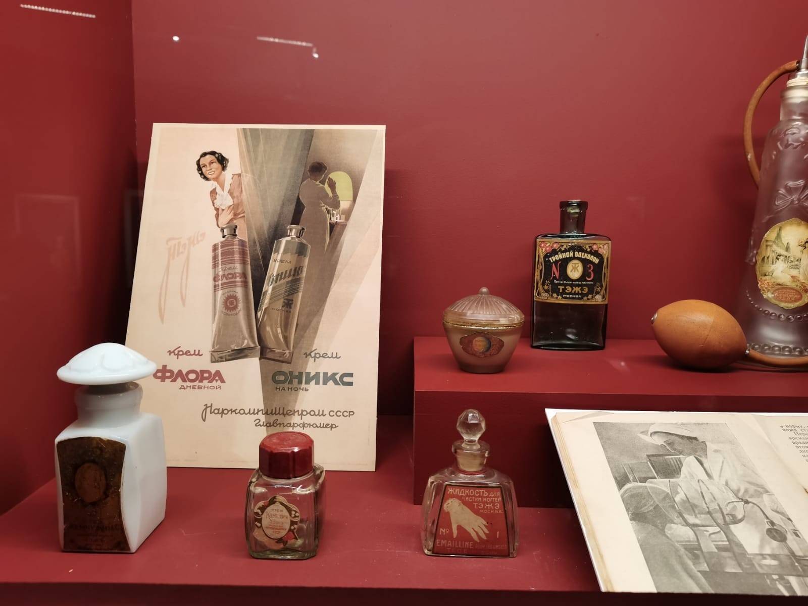 Экспозиция не только пышна и причудлива – она познавательна. Так, на одном из стендов дана редкая информация, с которой соприкасаются лишь профессионалы. Знаете ли вы что, что в Российской империи не было производства синтетических душистых веществ, а все парфюмерные ингредиенты привозили из-за рубежа? К середине 1920-х импорт вернулся к дореволюционным показателям. Вместе с тем руководству ТэЖэ стало очевидно, что необходимо обрести сырьевую независимость и обзавестись своими плантациями растений-эфироносов, лабораториями и заводами.
