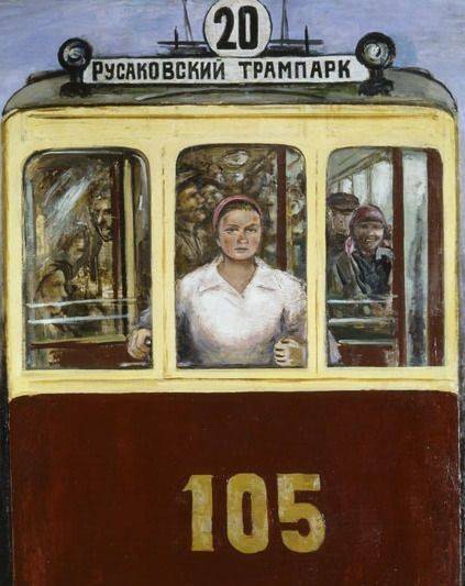 Перед нами картина Александра Монина «Новые времена», созданная в середине 1930-х. Тут уже нет контрастов – ни лохмотьев, ни заграничных рединготов. Респектабельно, хотя и просто одетые люди стоят в очереди за газированным напитком, а фоном – кинотеатр с афишей ленты «Новые времена» Чарли Чаплина. Картина – символична и многослойна, несмотря на посредственность живописной техники – настали времена, когда «жить стало лучше – жить стало веселее». Так сказал Иосиф Сталин, глядя на свершения. Люди выдохнули – наступило благополучие, отразившееся в таких кинокомедиях, как «Моя любовь», «Антон Иванович сердится» и «Сердца четырёх».