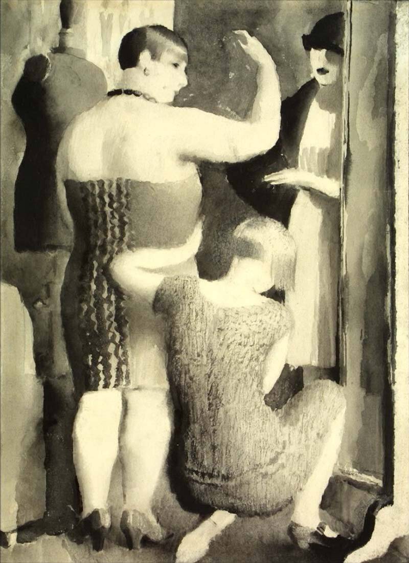 Но была и оборотная сторона бытия – НЭП и его адепты. «В ресторане» Юрия Пименова – это почти карикатура. Экспрессивные линии, точный росчерк. Танцующие парочки нелепы, но выразительны. Они вообразили себя хозяевами. Пименов издевается над персонажами. На выставке мы увидим целый ряд сатирических изображений – нэпманы в машине, на прогулке, у прилавка. Всё это – вчерашний день, который для парадоксальных-двадцатых вдруг стал днём сегодняшним. Сие был какой-то параллельный мир торгашей, модисток, маникюрш, журналов мод прямиком из Парижа и, разумеется, парфюмов. Иные дамы позволяли себе Шанель №5 – этот хит XX столетия, а также «Мицуко» от Герлена или что-нибудь от «Коти».