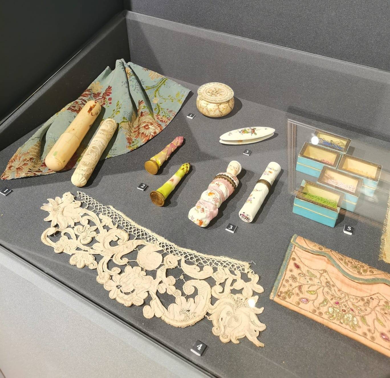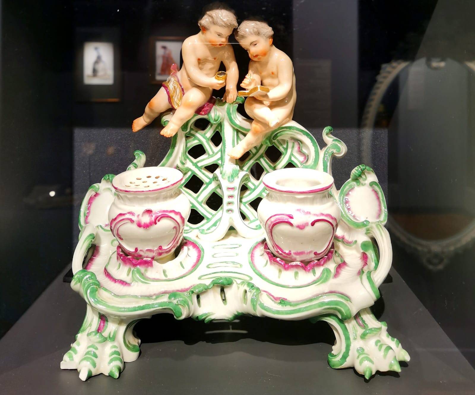 Также на выставке есть подсвечники, статуэтки, зеркала, картинки французских мод – с высокими причёсками а-ля Мария-Антуанетта. Всё дышит негой, а на ум приходят слова из пьесы Бомарше: «Здесь смешался глас рассудка с блеском лёгкой болтовни».