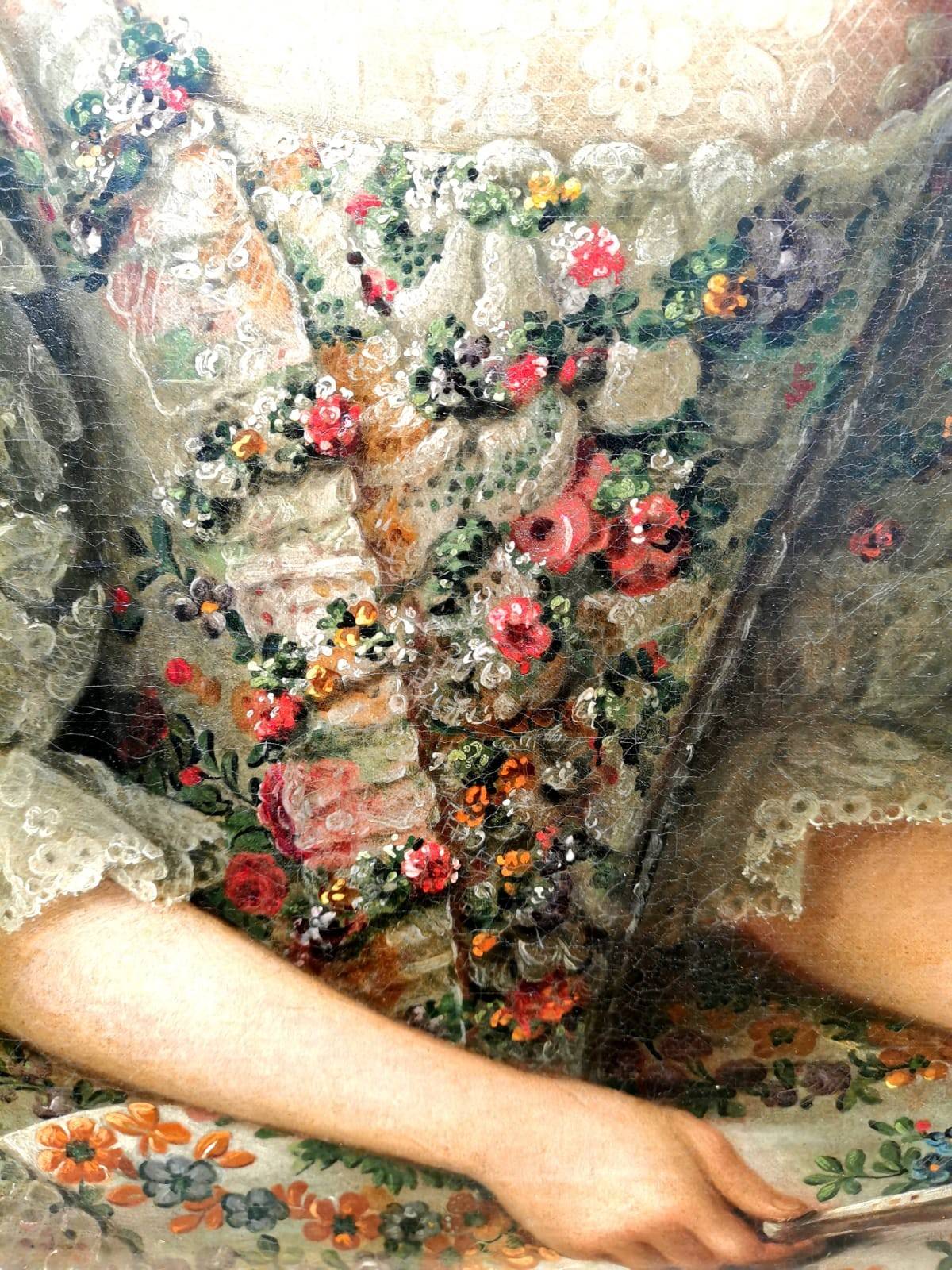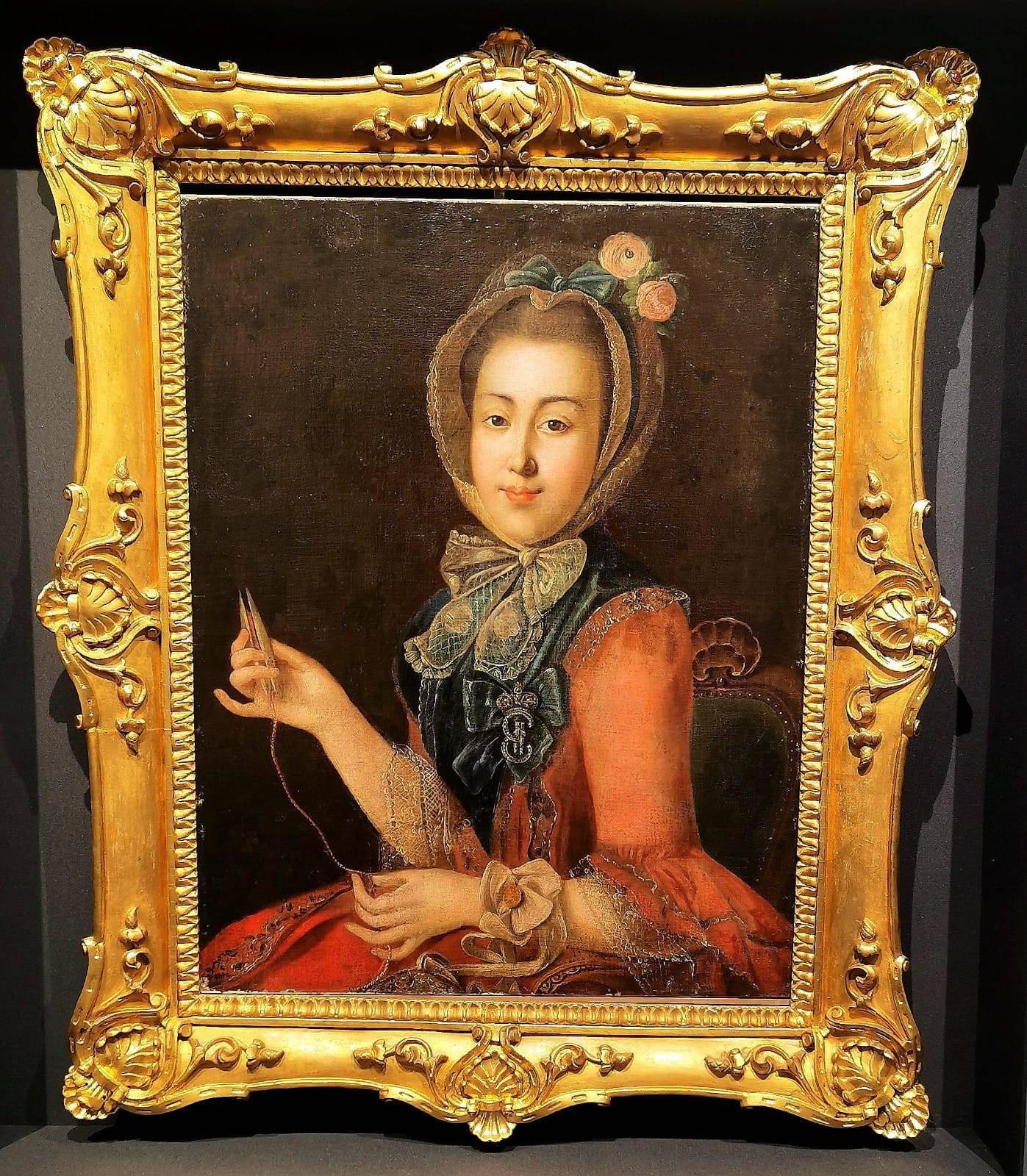 Экспозиция – небольшая, но ёмкая. Цель проекта – явить быт и нравы типичной аристократки галантного столетия. Перед нами – картины, образцы тканей, чернильные приборы, меблировка, мушечницы и табакерки. Встречают нас портреты Варвары и Анны Шереметевых, дочерей обер-камергера графа Петра Шереметева и Варвары Черкасской. Девушки – молоды и светлолики, напоминают фарфоровые статуэточки – так они легки. Варенька в парадном платье – вся в гирляндах из шёлковых цветов, с розой в пудреной куафюре. Аннушка – с фрейлинским шифром, вензелем Екатерины Великой.