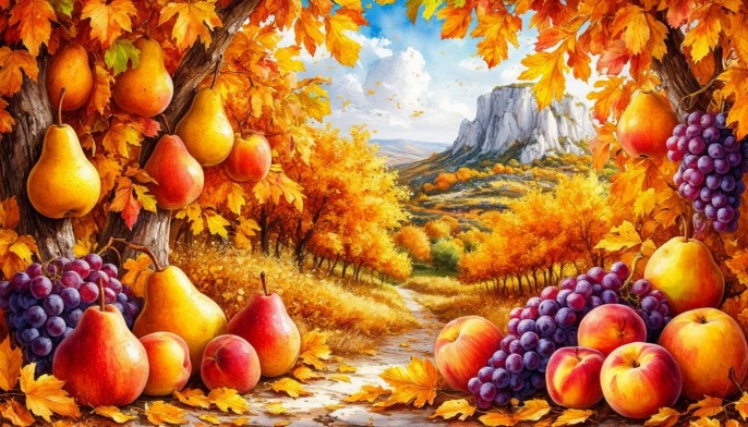 Живые … мёдотекучие яблоки… грушы … винограды… персики