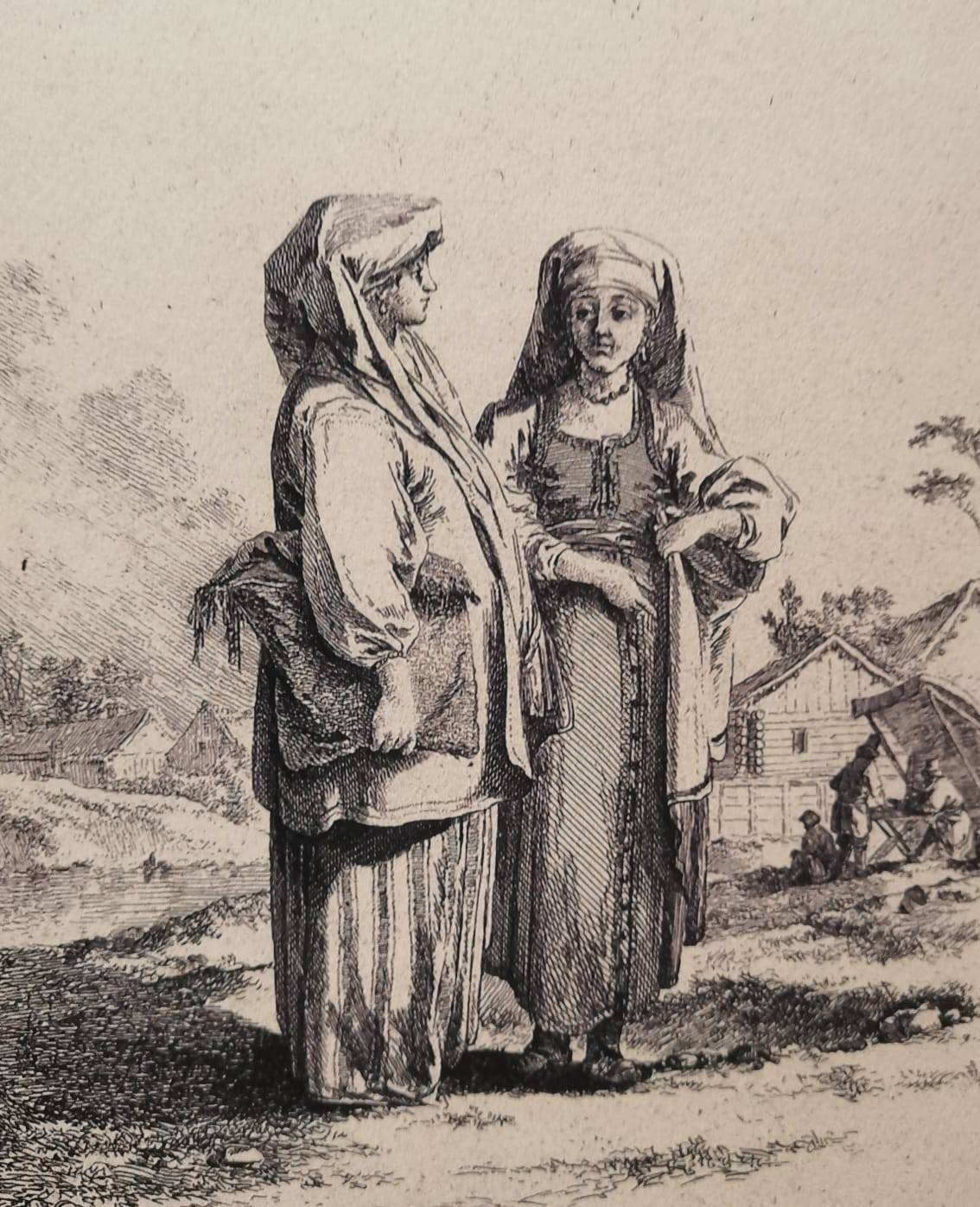 В области мод и стилей – всё та же полнейшая анархия – тут причудливым образом сохранялся старорусский костюм, даже среди дворян, спокойно сочетавших тулупы с пудреными париками и фижмы с душегреями. Кроме того, в Москве и её окрестностях жило много купечества, ремесленников и крестьян, не собиравшихся менять веками установленные правила. Поэтому на улицах была такая масса мужиков в треухах да баб в повойниках. В экспозиции представлены «экзотические типажи» московских обывателей работы француза Жана-Батиста Лепренса. К слову, во второй половине XVIII столетия возник интерес ко всему национальному – к своему, чужому ли, неважно, а потому художники разъезжали по городам и весям, зарисовывая аборигенов. Больше того, по гравюрам Лепренса на Императорском фарфоровом заводе была сделана посуда с изображением крестьянок, возвращающихся с рынка, мужиков, торгующих рыбой и так далее.