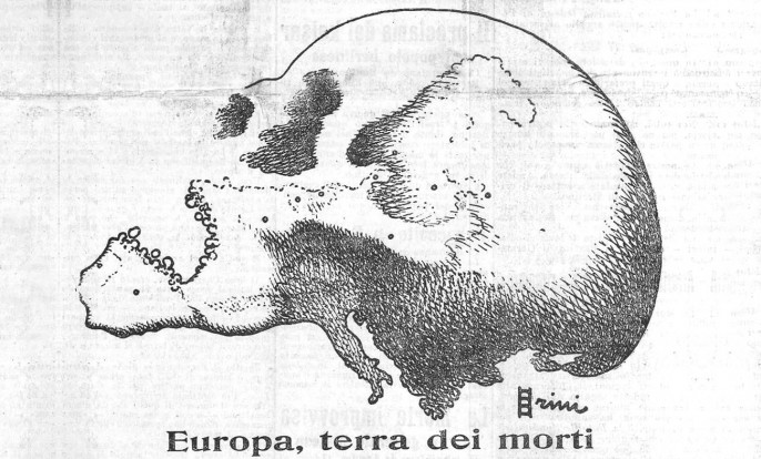 Илл. надпись гласит: "Европа, земля мёртвых" (перевод с итальянского)
