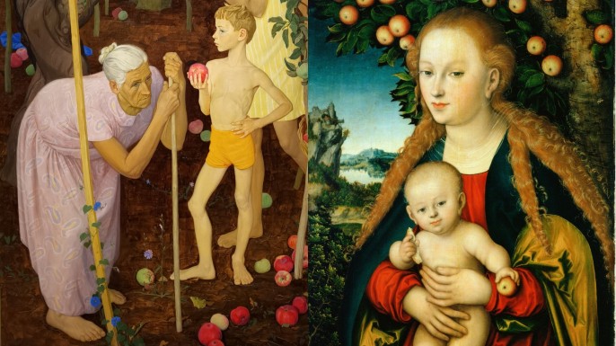 В христианской символике — яблоки не только символ искушения, но и искупительной жертвы Христа, снявшего проклятие греха с человечества, что отражено в работах Лукаса Кранаха Старшего («Мария под яблоней», 1526; «Мадонна с Младенцем под яблоней», 1530-е; «Мадонна с Младенцем и Иоанном Крестителем под яблоней», ок. 1535).