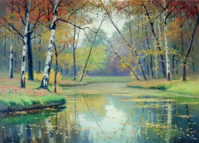 Мне тоже никуда из нашей России не хочется, но моя Марина родом из Абхазии и любит там подолгу жить. Поэтому в этом году я увидал в конце августа только золотые пряди берез. Все их видели, но это я написал, что именно с них, с золотых прядей берез, начинается осень. Марина, бережно хранящая мое творческое богатство, назвала их «щербаковскими прядями».