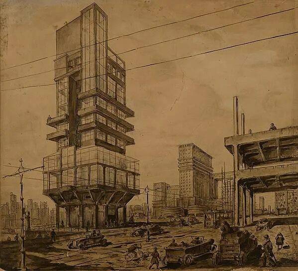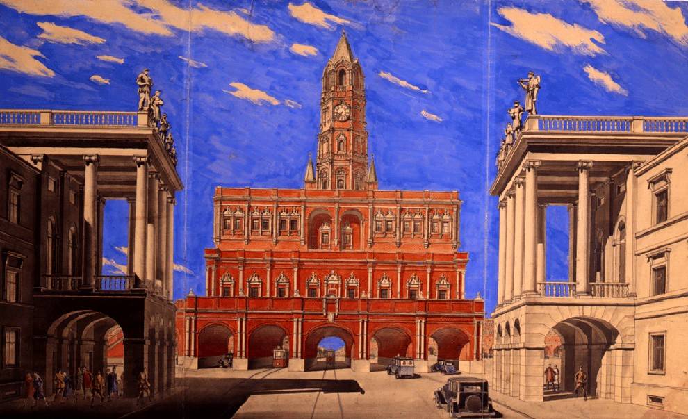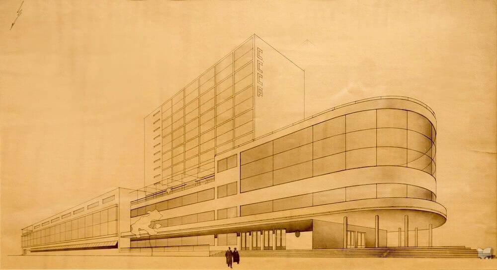 На выставке много фантазий, которые никогда не были, да и не будут реализованы. Вот – проекты конструктивиста Ивана Леонидова. Они и сегодня выглядят смело и актуально. Леонидов значительно обогнал своих современников и мыслил на перспективу. Впрочем, только ли он один? В 1920-х – начале 1930-х все мастера создавали модели грядущего, опережая десятилетия. Допустим, проект железнодорожной станции «Клязьма» Сергея Грузенберга представляется чем-то из 1960-х – по факту же это 1929-1930 годы. Футуристичен мир Пантелеймона Голосова – его эскиз библиотеки имени Ленина напоминает инопланетную штуку, дом Аэлиты, а ведь на момент создания рисунка в Москве ещё использовались экипажи на конной тяге. Вспомните, как Остап Бендер попал под лошадь.