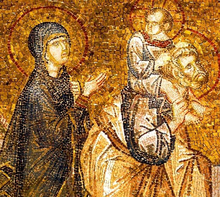 И в самом конце мне хотелось бы показать великолепные произведения византийского искусства, дошедшие до наших дней, к сожалению, в поврежденном виде, но все же являющие миру всю красоту и силу сакрального искусства Второго Рима почти перед самым концом его истории. И пусть никто не смеет говорить, что византийское искусство в этот период клонилось к упадку, а в Италии в это время процветал так называемый «Ренессанс». Каждый, кто увидит эти чудесные мозаики, скажет, что это не так. И не только высоким искусством отличаются эти мозаичные иконы – в них сквозит такая искренняя любовь к Богоматери и Младенцу Христу, что они кажутся теплыми, живыми (хотя ни о каком реализме в «ренессансном» смысле здесь и речи нет, разумеется).
