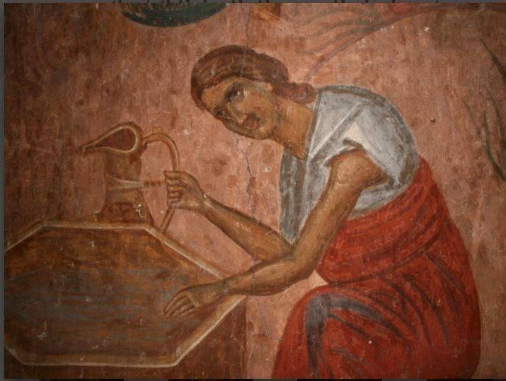 И под конец темы омовения Младенца Христа рассмотрим композицию, которая никого не может оставить равнодушным. Это фреска в храме св. Ахиллия в Арилье, Сербия, XIV в.