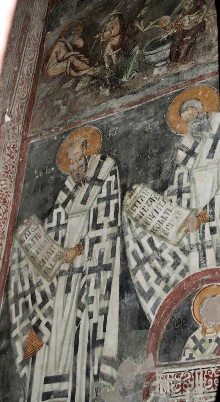45. Так же – на фреске Феофана Критского в церкви свт. Николая Афонского монастыря Ставроникита. Это уже середина XVI в., т.е. времена поствизантийские. Однако мы знаем, что Афон строго хранил традиции Империи ромеев и в богослужении, и в искусстве.