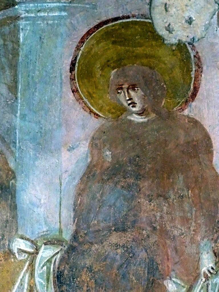 И никак не связывает эту фреску ни с «Жертвоприношением Авраама» в нартексе, ни с «Воскресением» (оно должно быть прямо напротив – на северной стене алтарной апсиды, но, к сожалению, не сохранилось) как победой Христа над Смертью – перекличка здесь совершенно очевидна, а соседство изображений подчеркивает заложенные в них смыслы, делает их особенно наглядными.