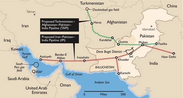 Это карта газопровода из Ирана через Пакистан в Индию , который вроде как строится.
