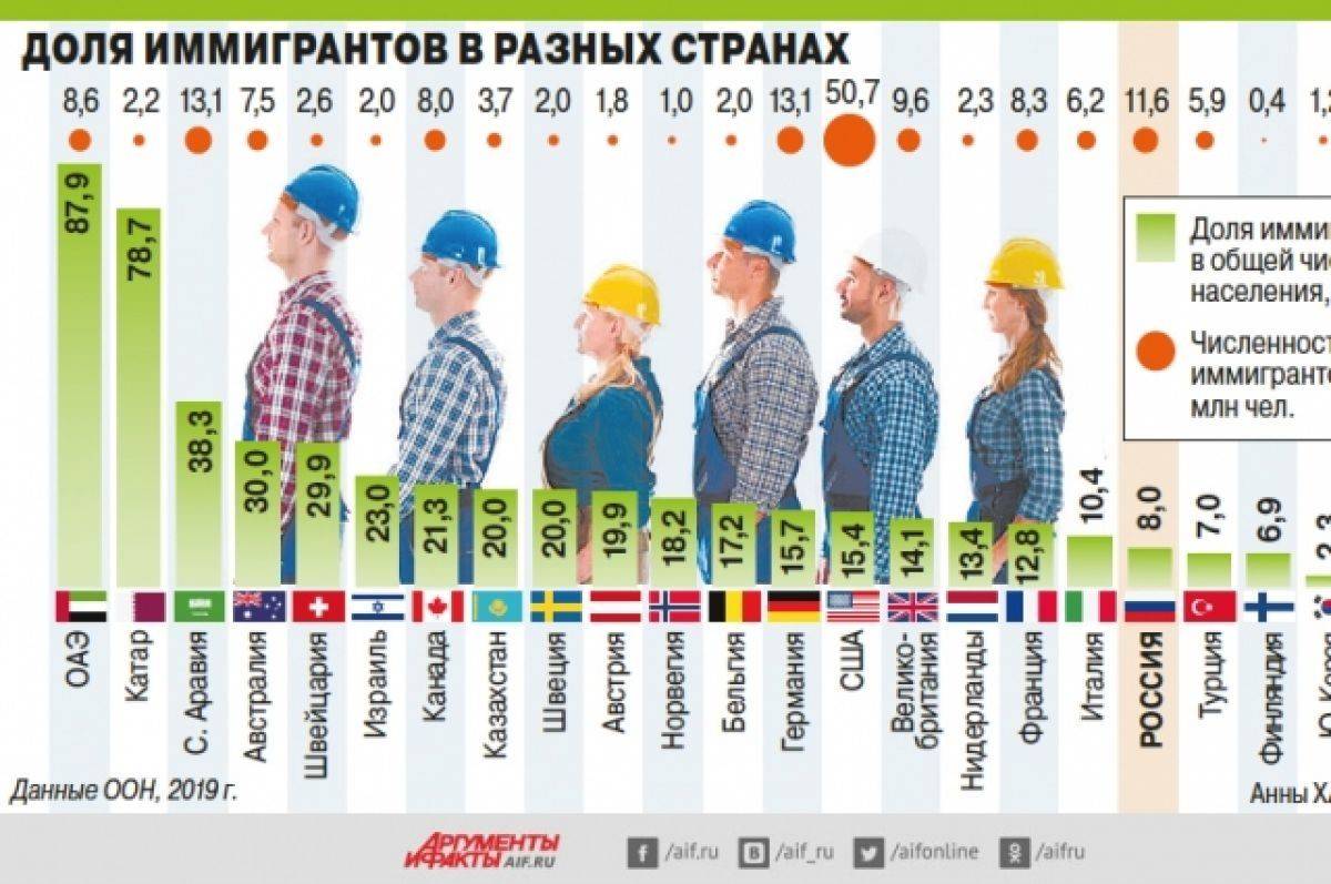 Как мы видим из этой схемы, мигранты выбирают для жизни и работы те страны, которые им удобней. Жителям бывшего СССР, конечно, удобно приезжать в Россию, так как многие из них довольно неплохо знают русский язык. В Японию мало кто приезжает, и туда мало кого пускают, и без хорошего знания английского и японского там совершенно точно делать нечего. Однако ввиду быстрого старения и вымирания японцев, и, кстати, корейцев, и Япония и Южная Корея вынуждены либо всё роботизировать, что очень дорого, либо принимать на работу мигрантов. Япония в последние годы начала либерализацию законов, касающихся мигрантов. При этом доля мигрантов в Японии всё равно пока очень мала.