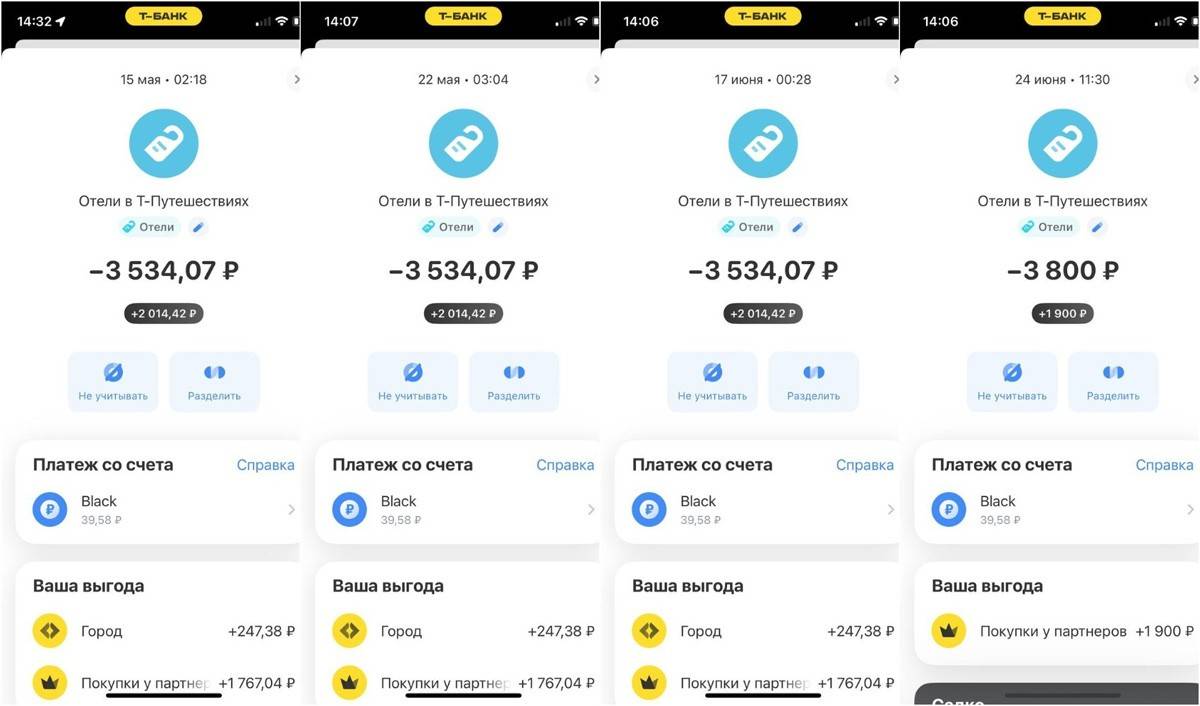 Гораздо интереснее, что предлагают банки. Например, Т-банк (бывший Тинькофф) активно развивает в рамках экосистемы Город свой сервис Т-Путешествия, где регулярно дают кэшбэк 10% (причем цены, в отличие от прочих агрегаторов, в этом сервисе обычно не завышена). При этом иногда в Т-Путешествиях был то дополнительный кэшбэк, то промокод на 50% на бронирование, суммировавшиеся с этими 10%. Конечно, у таких кэшбэков есть лимиты (например, кэшбэк 50% начисляли максимум до 2500 руб), но скидка все равно очень ощутимая.