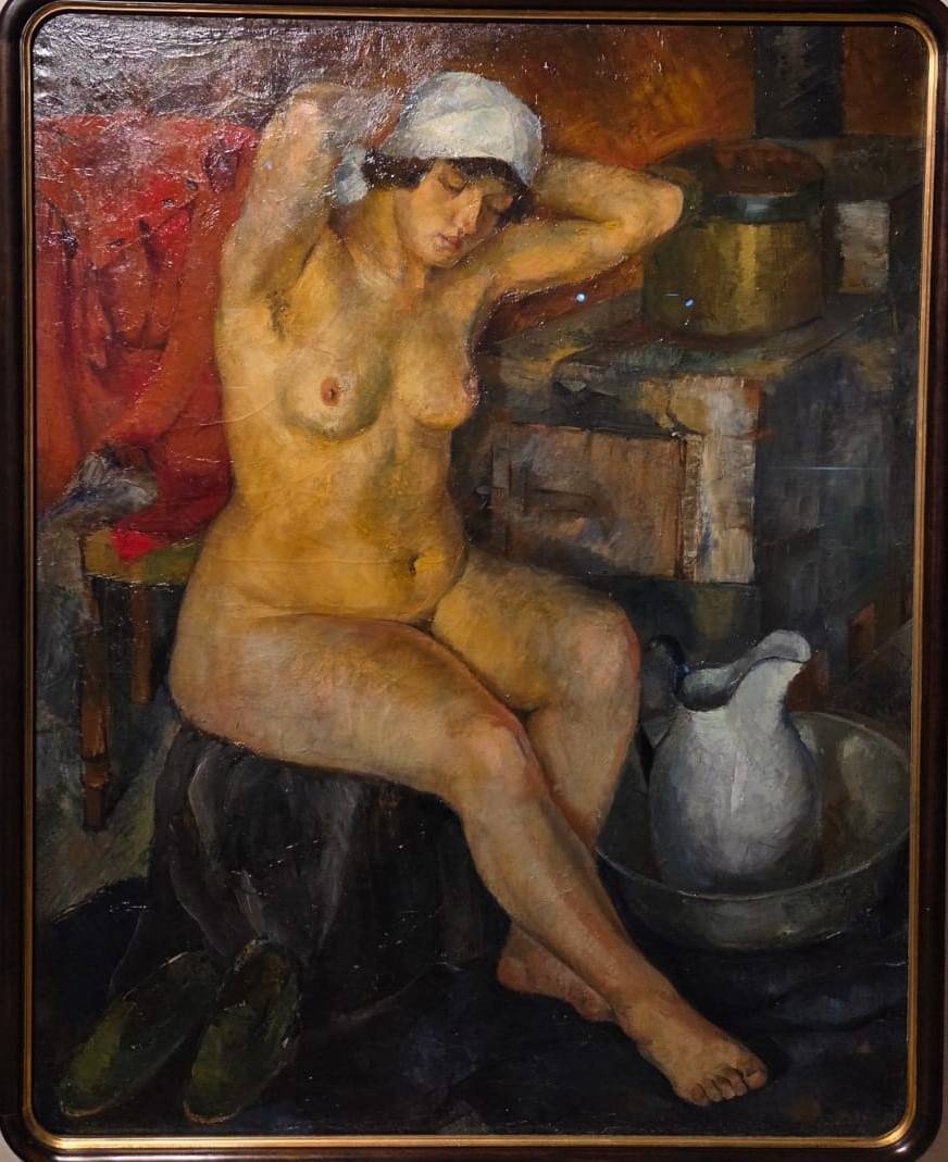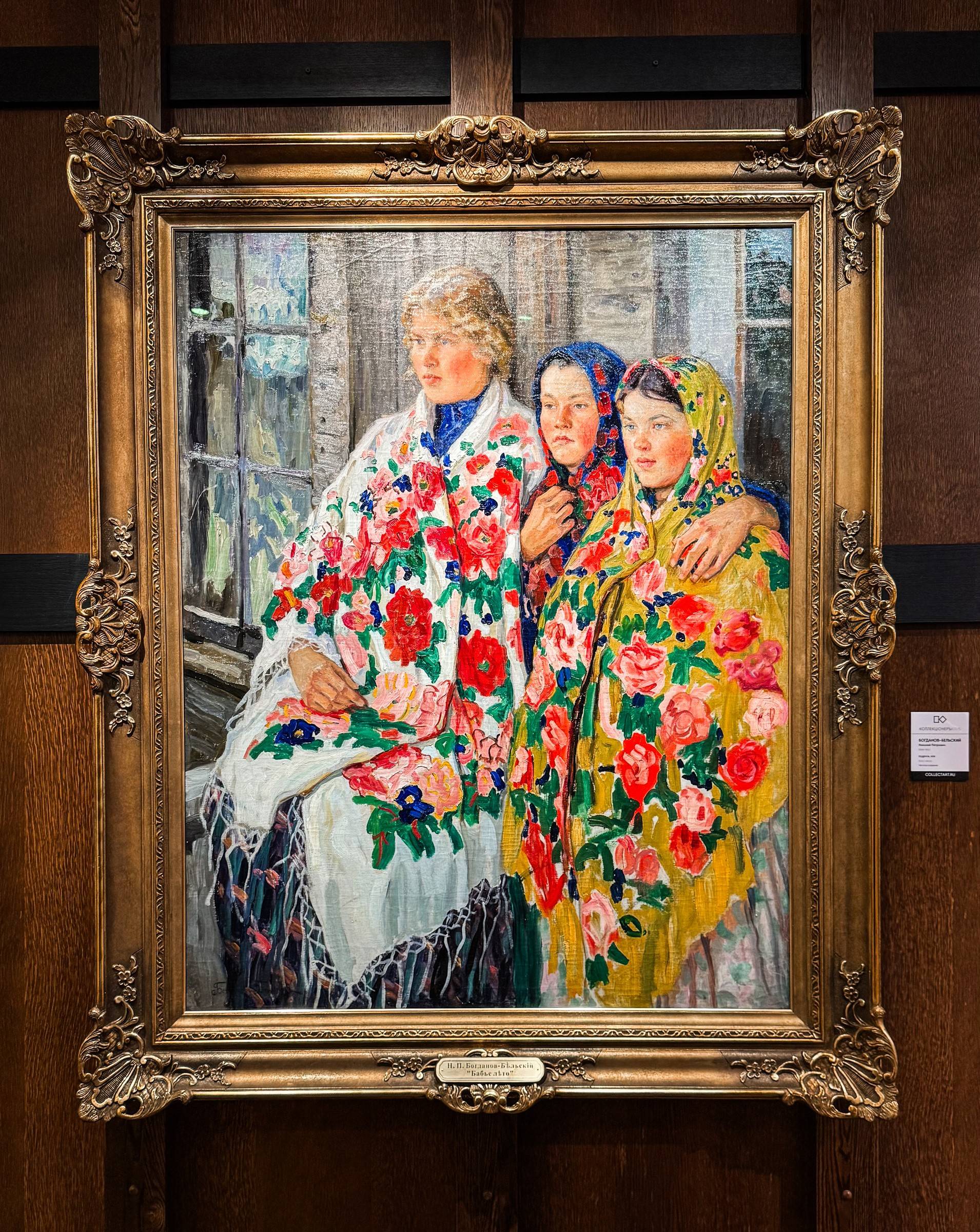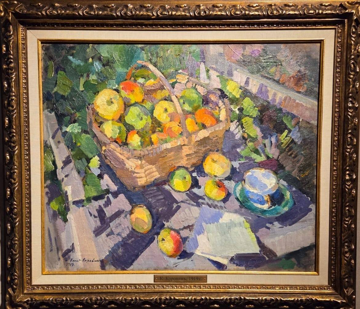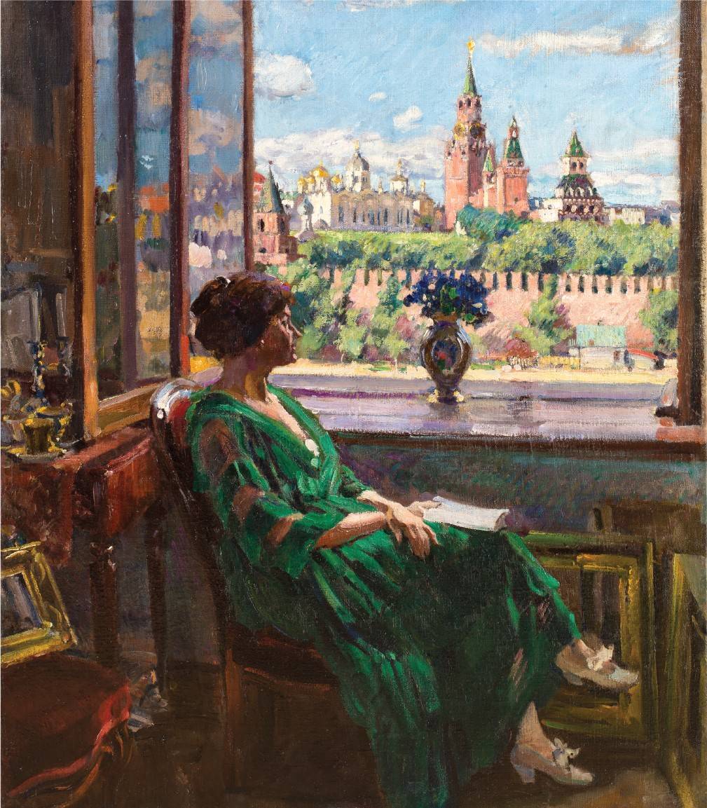 На выставке много картин соучеников, приятелей, знакомых Константина Коровина. С некоторыми, как с Николаем Богдановым-Бельским, он пересекался в поленовских классах. С кем-то бывал в одной компании или же участвовал в общих проектах. У Поленова также проходил учёбу и Сергей Виноградов. Один из хитов экспозиции – его картина «Вид на Кремль из Замоскворечья». Умиротворённость, не свойственная Москве 1918 года, женщина в изумрудно-зелёном платье, ваза цветов — это изящная попытка эскапизма.
