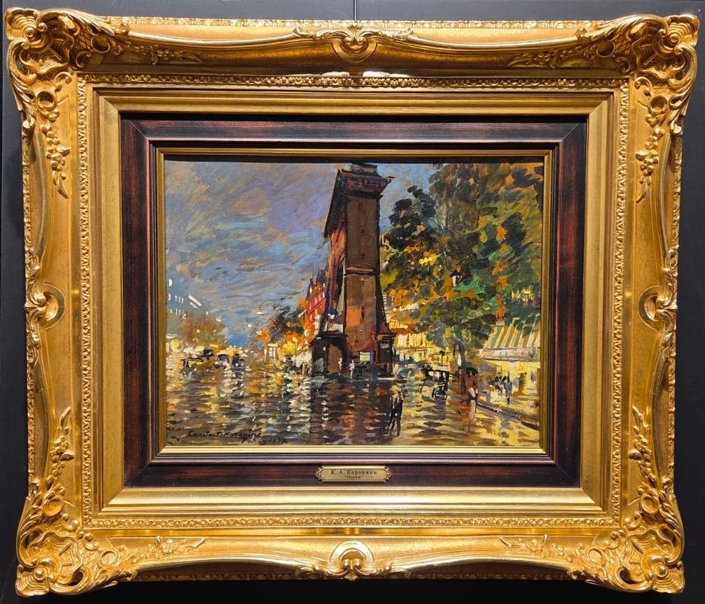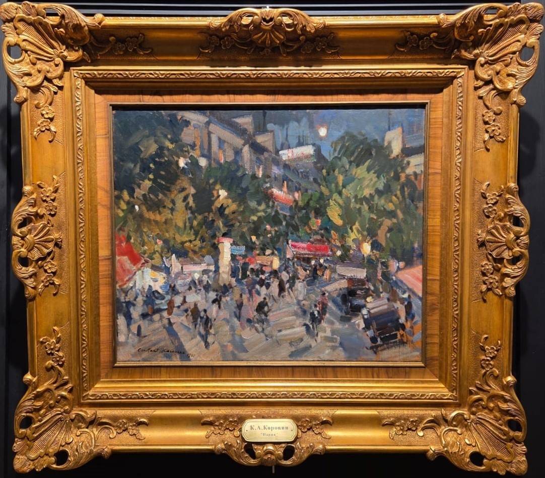 Художник жадно впитывал всё, что видел – на его картинах мы наблюдаем и центральные проезды, и достопримечательности, и кафе. Огни и толпы, жаждущие развлечений – таков коровинский Париж. Писал, по преимуществу, ночью или поздним вечером – как раз в то время, когда шли представления в знаменитых варьете, а по улицам шныряли вороватые клошары. Впрочем, они художников не трогали, принимая, как «своих». Звенела музыка, раздавались крики, цокали каблучками смешливые кокотки. Кипящий котёл, в котором так легко свариться. Париж – обворожителен, а Коровина всё равно тянуло в Москву и как жаль, что он покинет Россию в начале 1920-х годов.