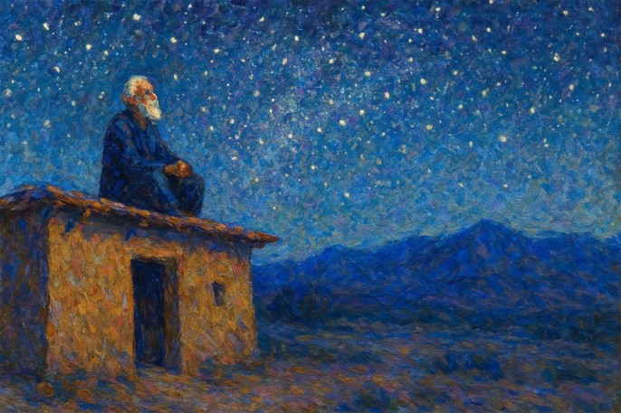 Взобрался на низкую крышу своей глинобитной кибитки,