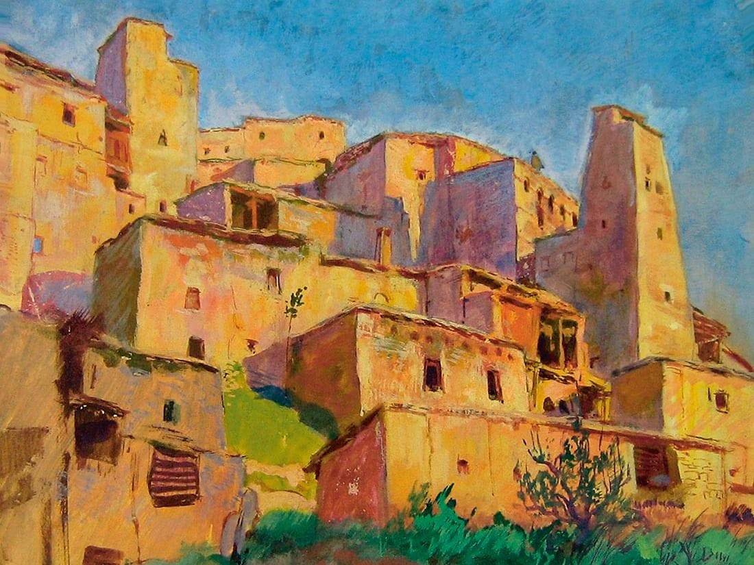 Что ещё отличало Евгения Лансере? Он не страшился гор. Напротив, говорил восторженно: «...Какое влекущее к себе впечатление на меня всегда производят горы. Ничто мне не кажется столь таинственным, столь заманчивым, а особенно снежные вершины. Не могу от них оторваться». Лансере пленился той природой и этими народами. Прекрасны рисунки, связанные с дагестанским селом Тидиб – несмотря на тесноту построек, ощущается необозримое пространство.