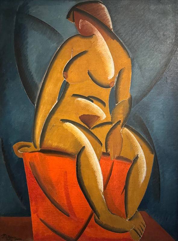 Перед нами - портрет матроса. В нём живо угадывается сам художник. Остренькое лицо, яркий рот, голубые глаза – всё резвыми штрихами и – узнаваемо. Вот – другой автопортрет, уже в синем костюме и шляпе. Гротеск уровня шаржа и, тем не менее, подчёркнуты характерные черты. Сидящая натурщица – что-то броское на сером фоне. Игра цвета и линий – у модели не прописано лицо, но ощущается динамика момента, словно бы девушка только что повернулась. «Продавец рыб» - композиция закольцована, и персонаж находится в окружении своего товара. Примечательно, что художник делает всё нарочито плоским, а получается объём, и он буквально осязаем.