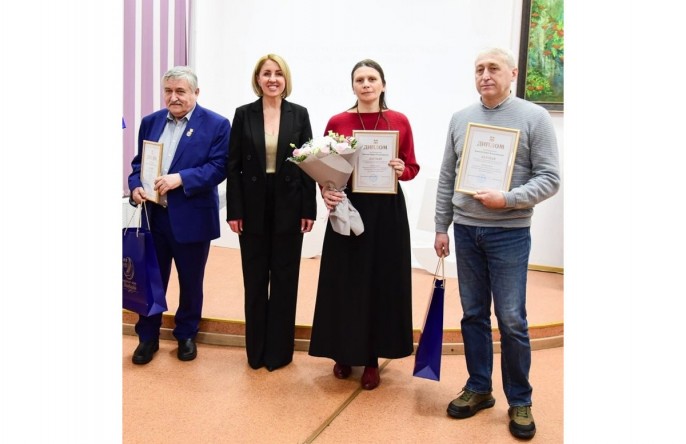 Загл. фото. Церемония награждения. Слева направо: Владимир Полушин, Ольга Сидоркина, Ирина Ушакова, Борис Бакакин (соцсети)