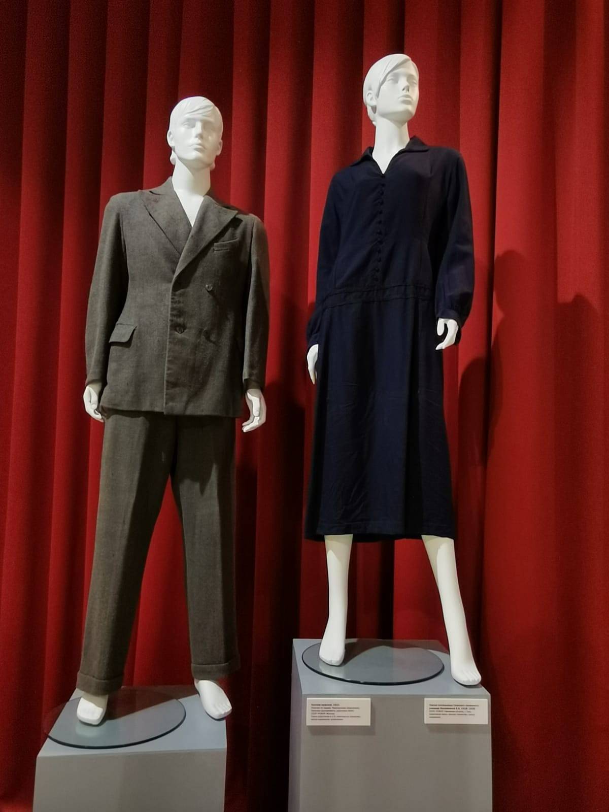 Особое внимание привлекает одежда – платья с чуть заниженной талией, как было принято в 1920-х годах. Перед нами не самые модные образцы, но прозаично-типичные. Имеется и наряд 1910-х годов. Зачем он тут? Многие донашивали свои дореволюционные вещи, о чём упоминается и в рассказах Михаила Зощенко. Это не трактовалось, как признак «старорежимности» - не у всякого хватало средств, чтобы отовариваться новинками сезона в нэпманских магазинах.