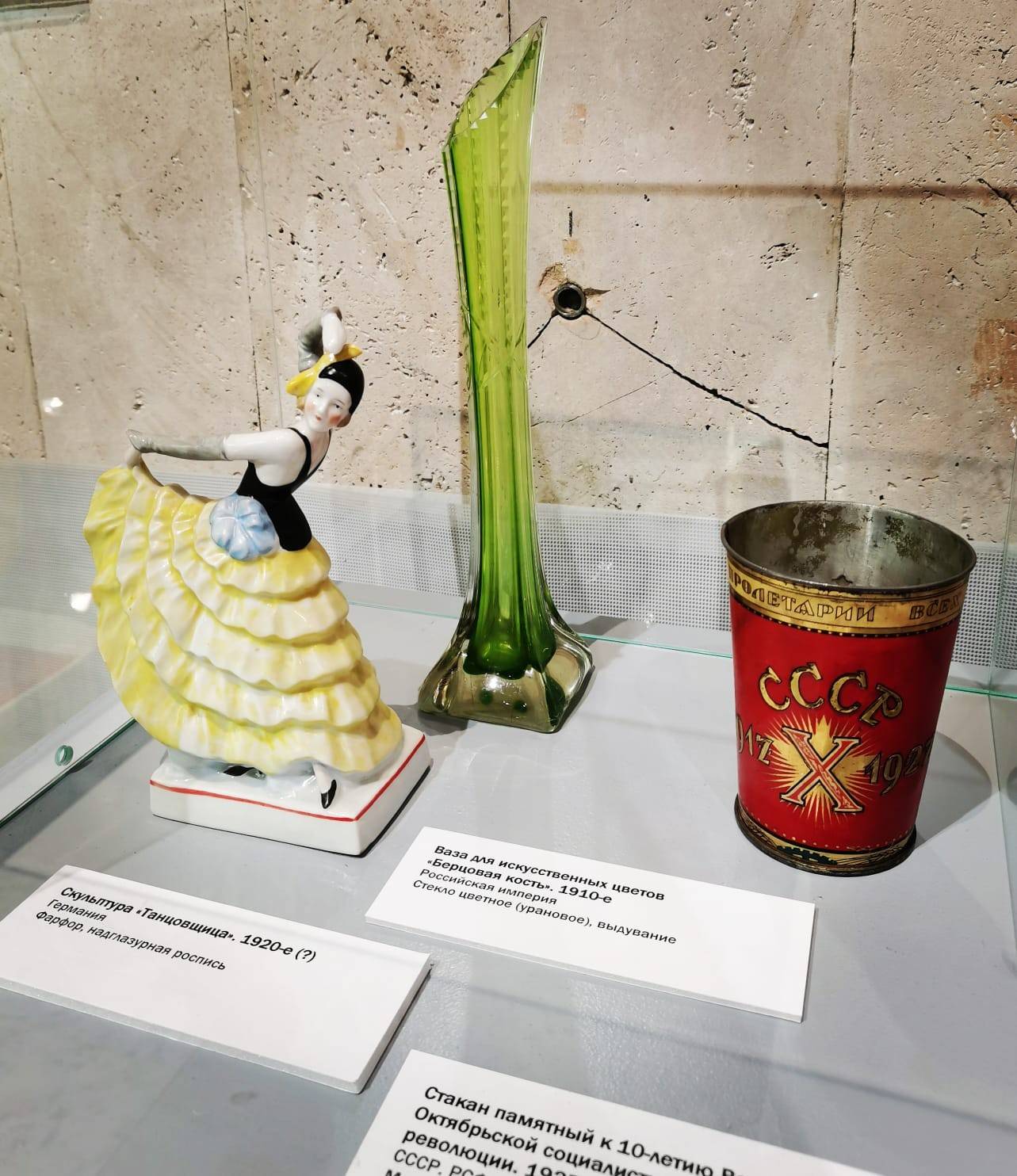 Среди экспонатов – удивительные предметы с историей. Например, бюст Владимира Ленина - подарок комитета МОПР Иркутского металлургического завода II пленуму ЦК МОПР СССР. Аббревиатура МОПР сейчас требует расшифровки - Международная организация помощи борцам революции. То была коммунистическая благотворительная организация, созданная по решению Коминтерна в качестве аналога Красного Креста. Или декоративная ваза, изготовленная австрийскими мастерами по заказу профсоюза рабочих-медников Вены в подарок рабочим-металлистам Москвы к 10-летию Октябрьской революции.