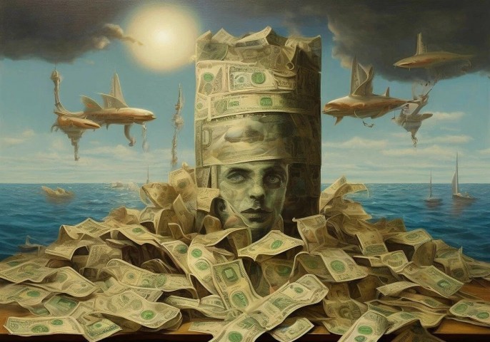 Вот здесь часть (человек) и уподобляется божественной, точнее обожествлённой, Части, стараясь стать именно богом – суверенным и всемогущим. А сделать это удобнее всего именно в сфере экономики. Она дальше от Духа, а, следовательно, и ближе к Душе. Это ведь только кажется, что удаление от Духовного означает перемещение в Материальное – как в конечный пункт назначения поезда инверсии. А это только промежуточная станция, конечной же является именно Душевное.