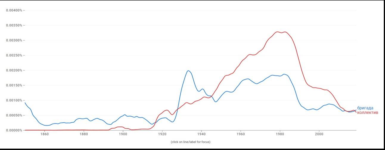 Ну, и что из всего этого следует? Да все следует, все абсолютно. Из гордых независимых индивидов не сделаешь армию, они разбегутся при первой опасности. Не получится из индивидов бригада или коллектив. Кстати, вот еще одна картинка из Гугл-Нграма: