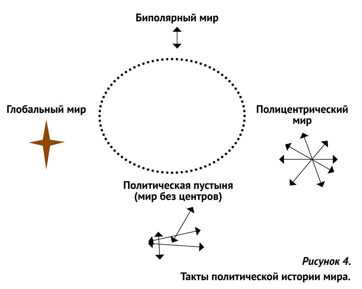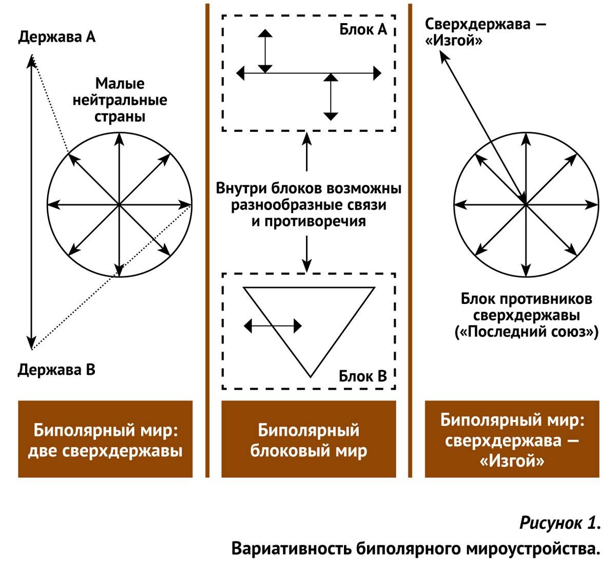 Биполярный мир развивается по законам классической диалектики: конфликт разрешается через войну, после чего на руинах предыдущего противоречия возникает новое, структурно эквивалентное. Таковы последние 500 лет европейской истории. Испания и Британия. Франция и Британия. Германия и Британия. Германия и СССР. СССР и США. Разумеется, за эти столетия реализовались все возможные версии — и борьба сверхдержав, и столкновение блоков, и структура «Изгой».