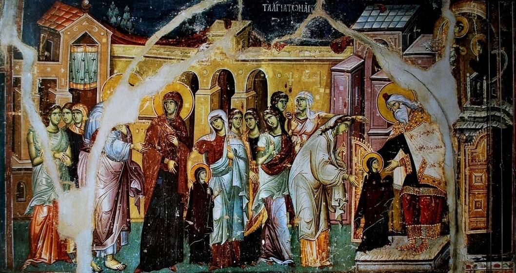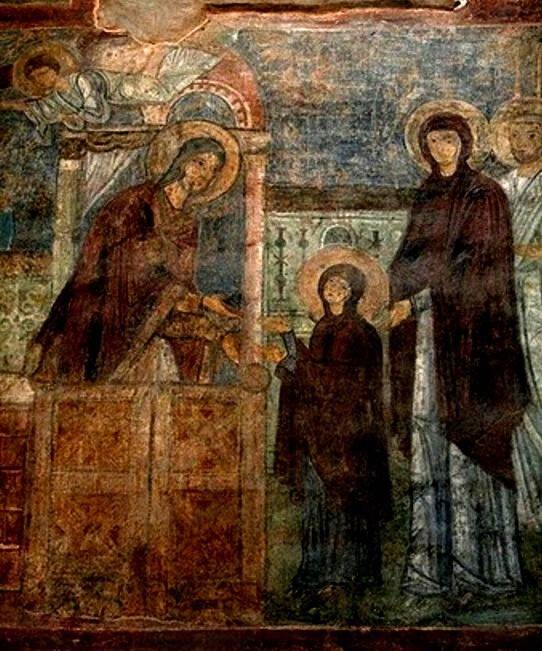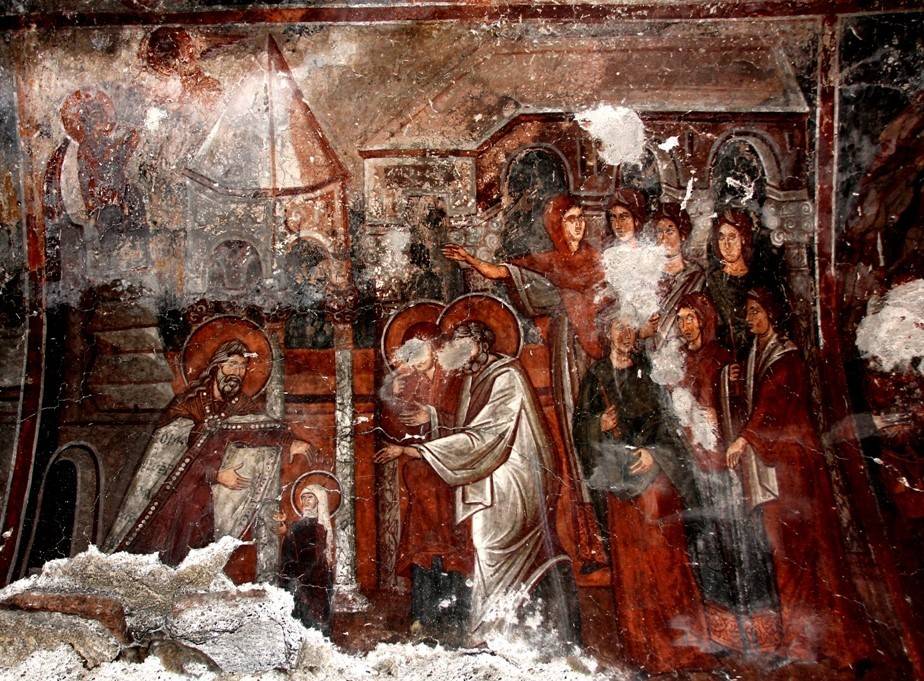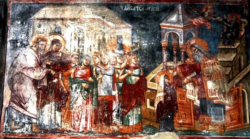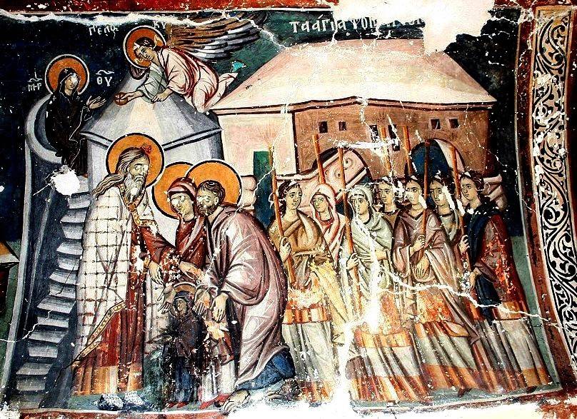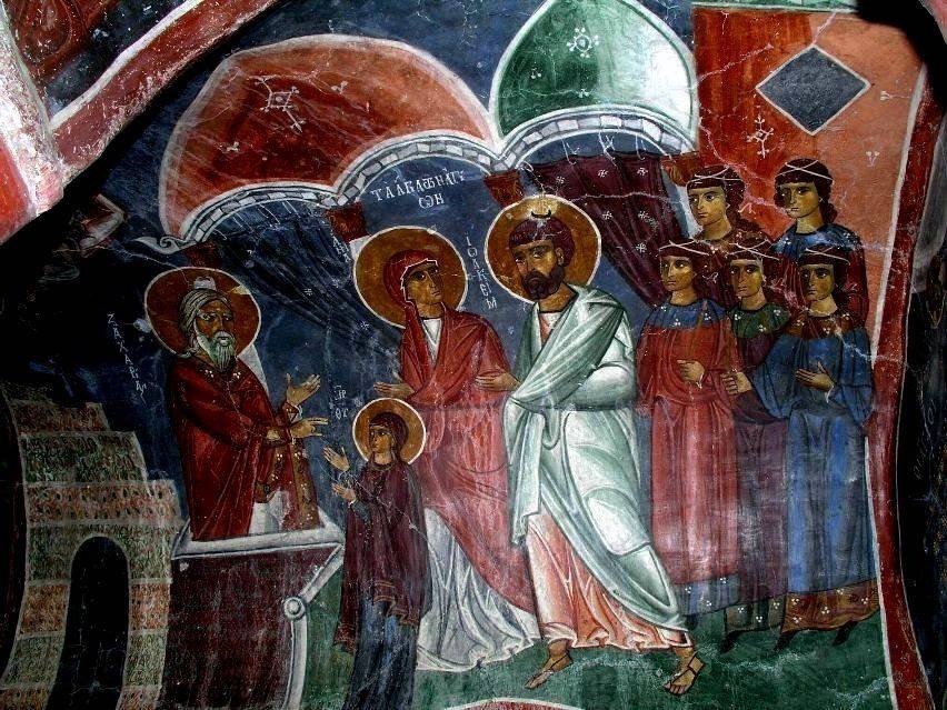 37. Введение во Храм. Церковь Ахиллия Ларисского, Арилье, Сербия, роспись конца XIII в.